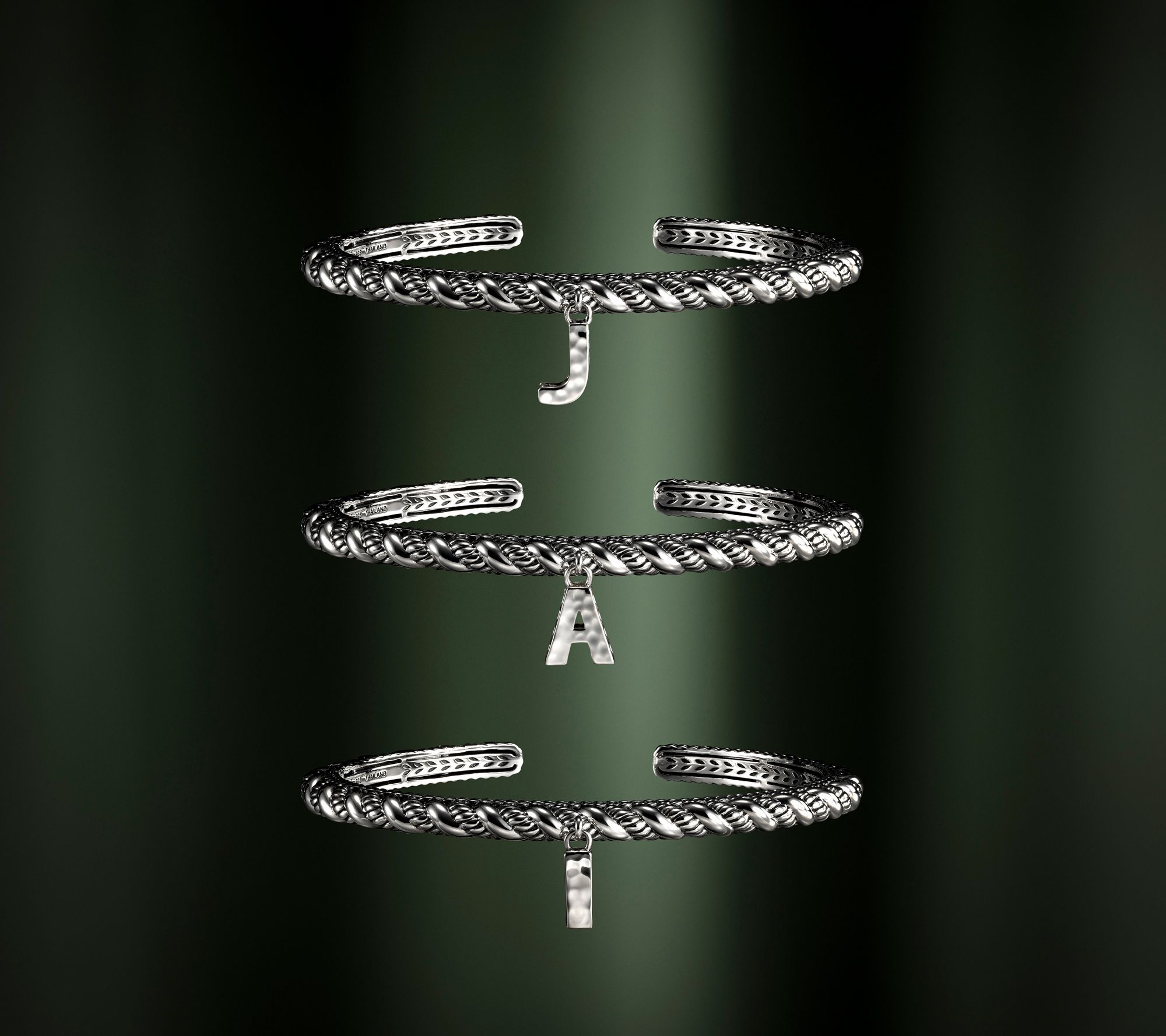JAI Sterling Silver Sukhothai Twist Initial Cuff Bracelet, 22.8g