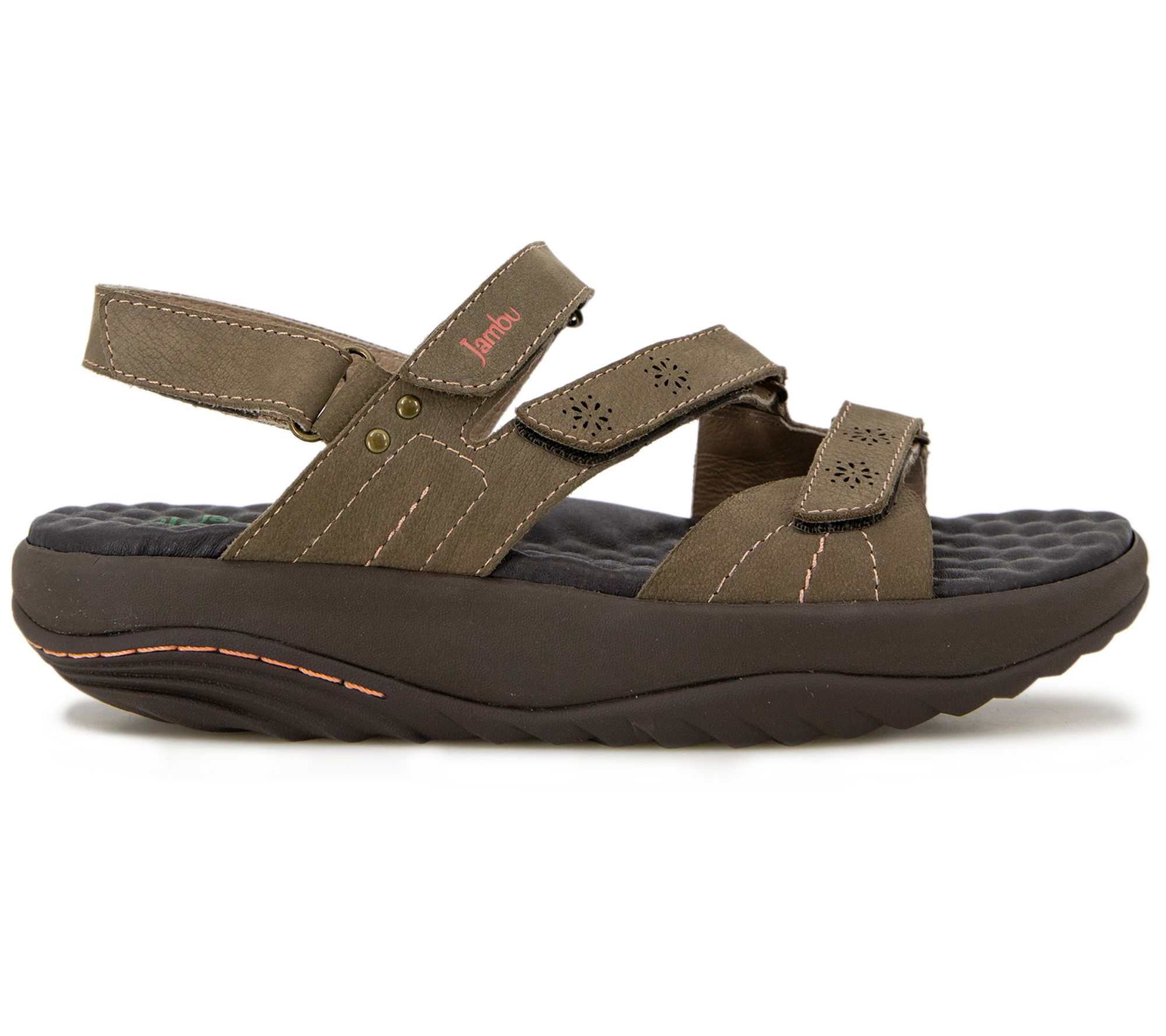Take on sunny days in comfort and style with these strappy sandals featuring floral accents and sturdy rocker outsoles. From Jambu.