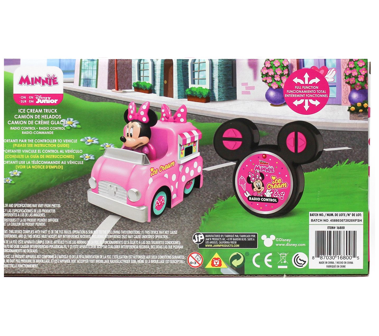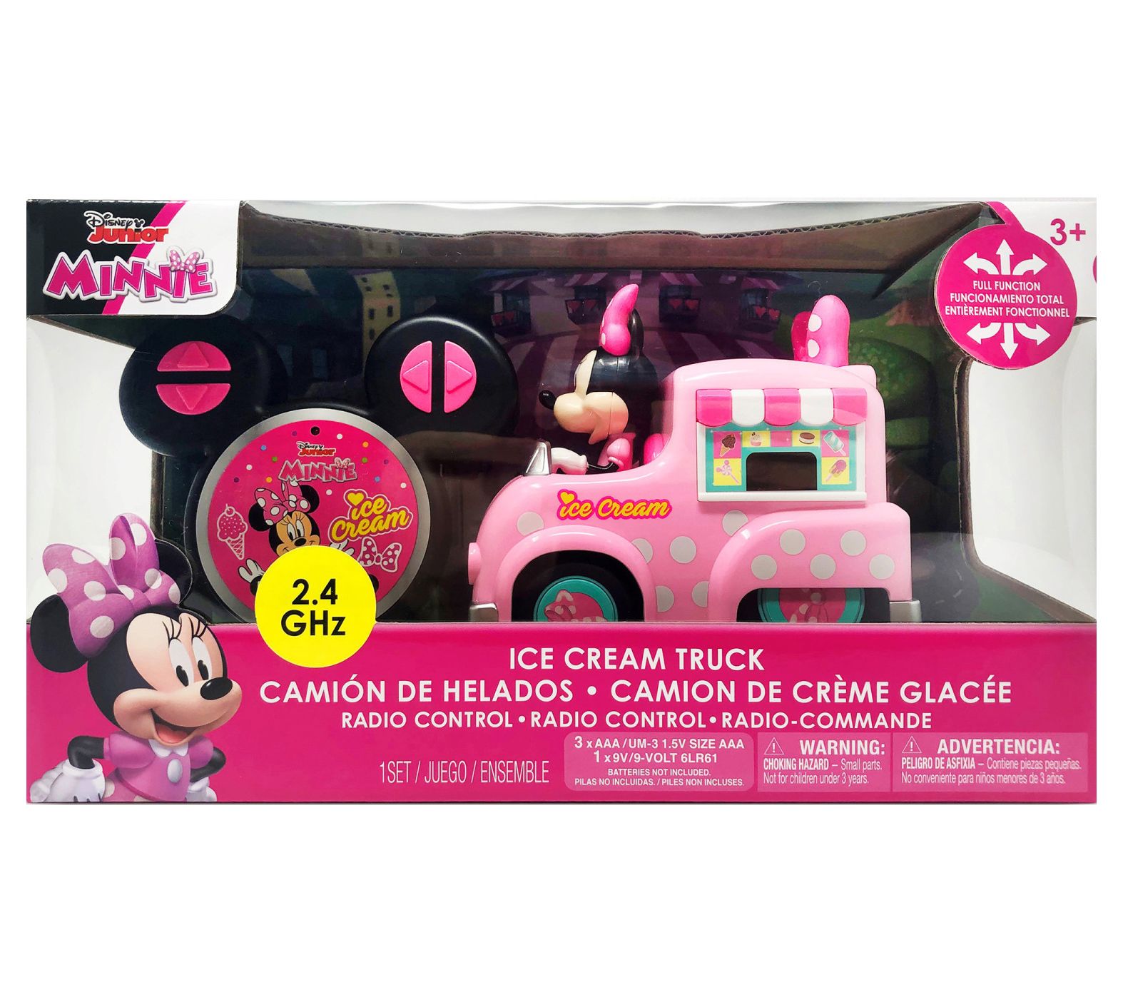 Bring Disney magic to playtime with this Minnie Mouse radio control ice cream truck featuring Minnie's signature pink colors, polka dots, and a charming bow on top. Easy controls and a playful design invite endless adventures, making imaginative moments even sweeter for Minnie fans and little drivers alike. From Jamn Products.