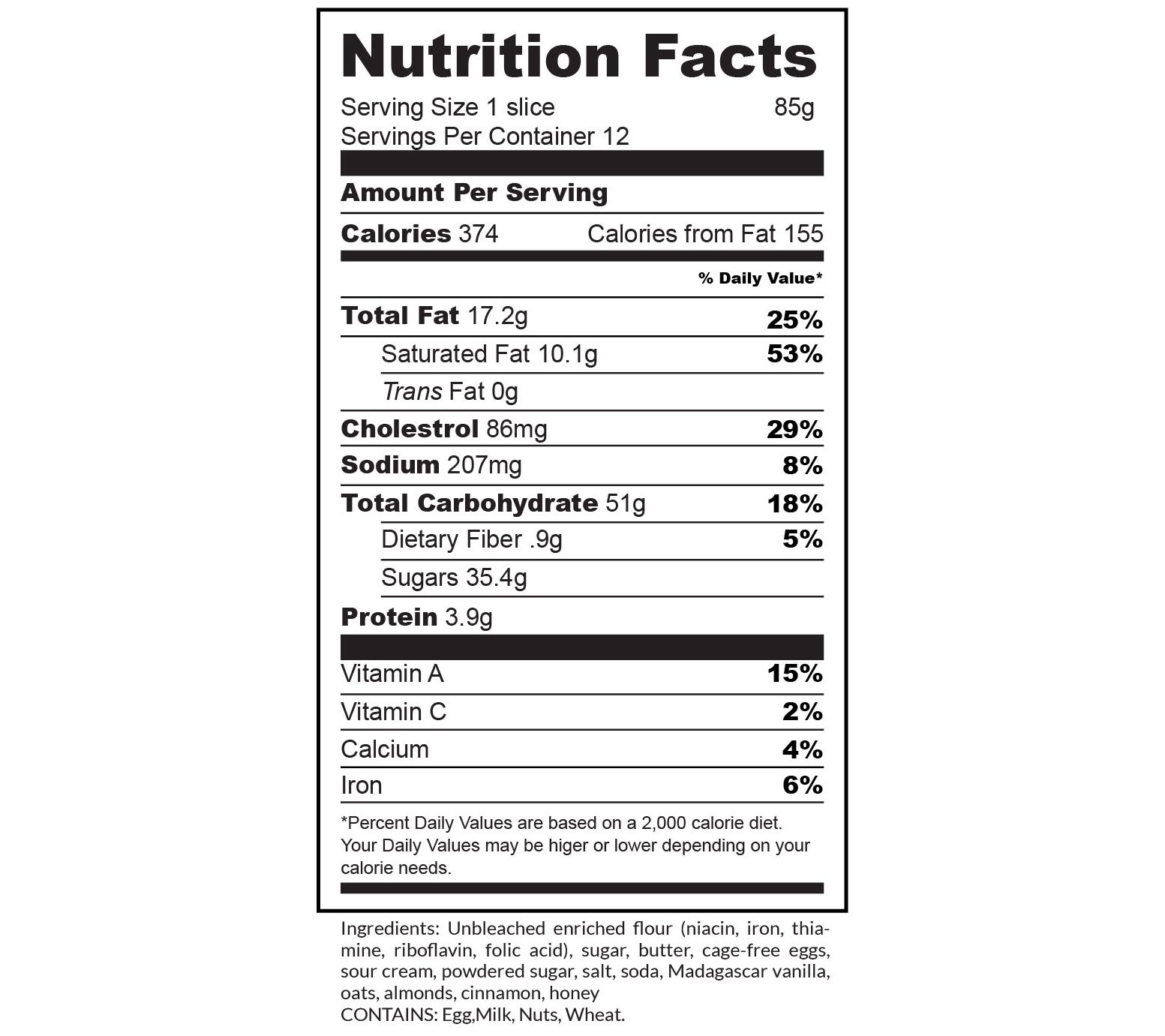 • Cinnamon swirled pound cake filled with cinnamon buttercream, topped with oat and almond granola
