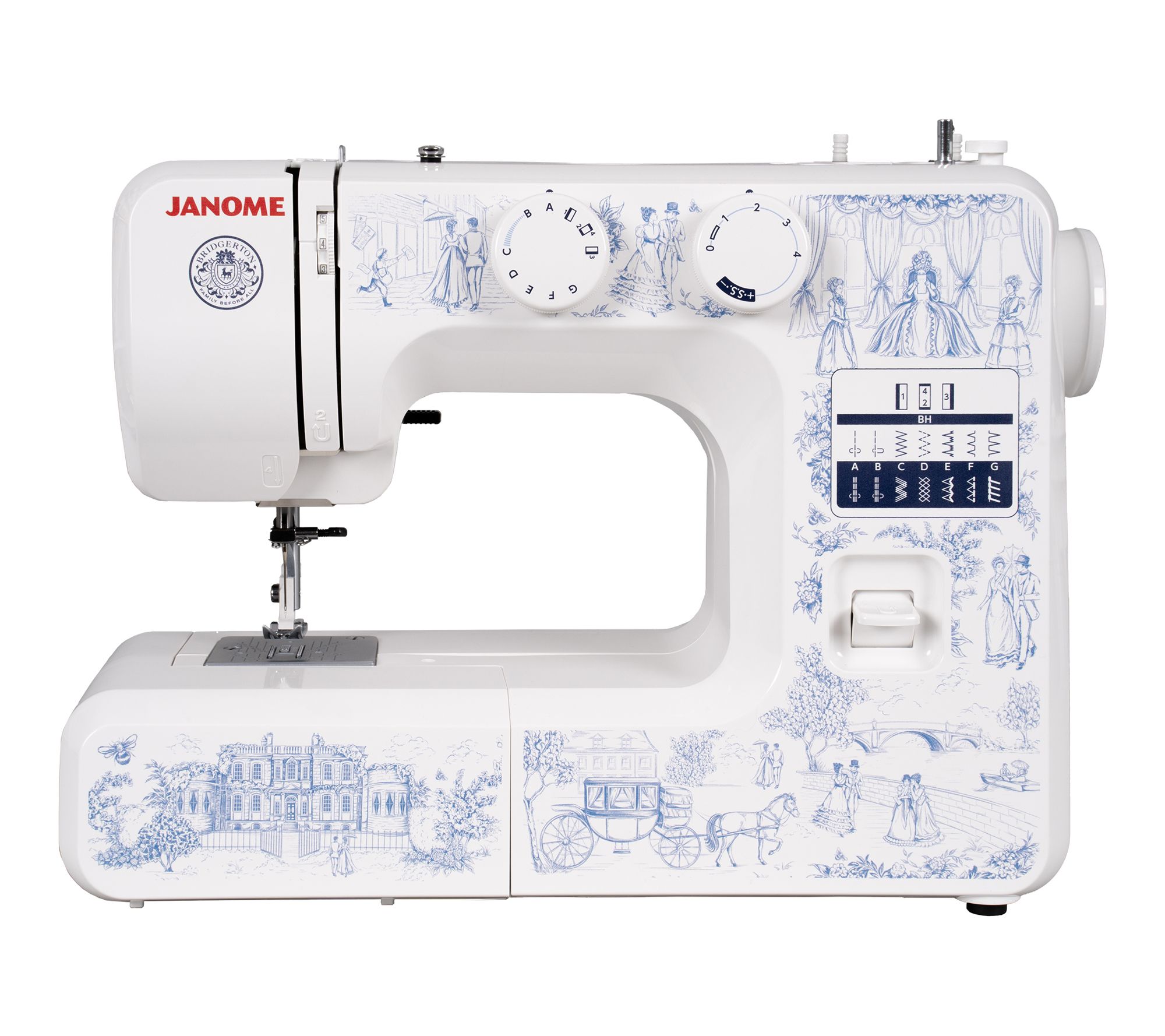Bring a touch of Regency charm to your craft room with this Bridgerton-inspired sewing machine, where eye-catching design meets easy-to-use functionality. Tackle everything from custom garments to cozy quilts using versatile stitches, helpful guides, and a smooth, steady performance designed for beginners and seasoned sewists alike. From Janome.