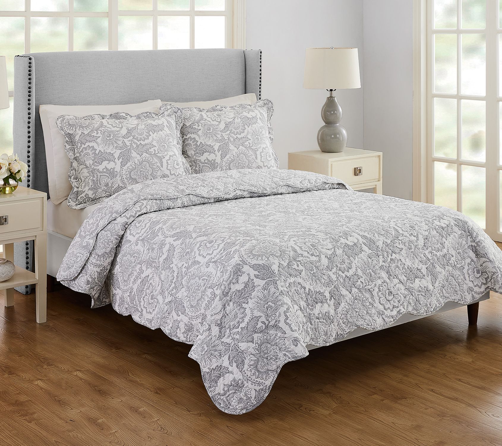 Java Lace Scalloped 3-Piece Full/Queen Quilt Se t