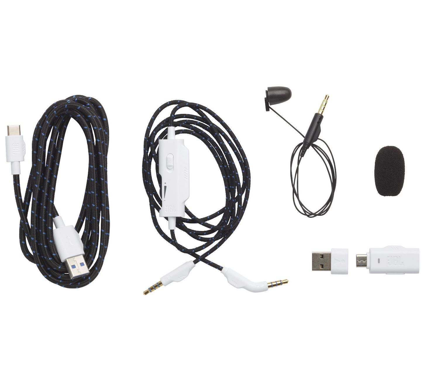 Includes Quantum 910P headset, calibration mic, USB charging cable, audio cable, USB wireless dongle, USB-A to USB-C converter, and microphone foam cover