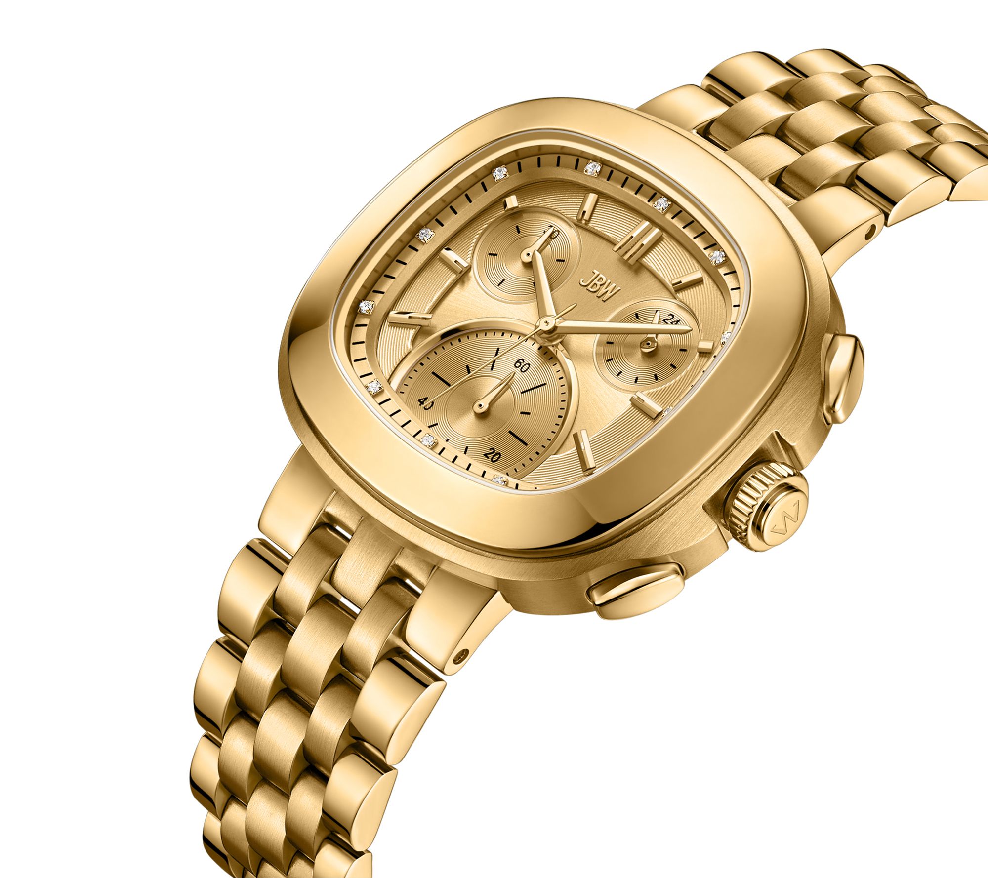 Experience a striking blend of classic elegance and modern innovation with this men's watch, designed to make every moment memorable. The gleaming 18K gold-plated stainless steel case showcases 12 lab-grown diamond accents, while chronograph functionality and a 24-hour format keep you on schedule in style. Whether at a business meeting or a special evening out, this timepiece elevates your look with commanding confidence. From JBW.