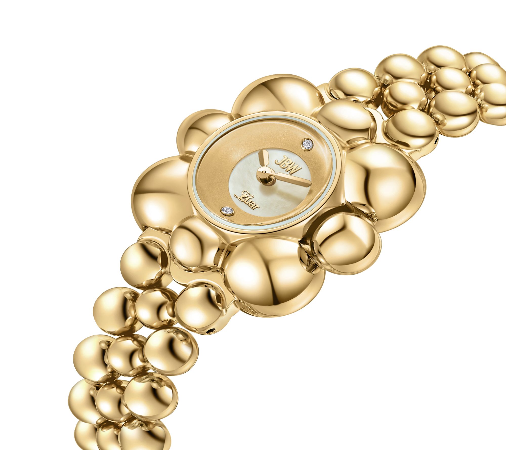 Experience the allure of a watch that blends celestial inspiration with everyday elegance. Its round case in 18K gold-plated stainless steel gleams with a champagne mother-of-pearl dial, accented by lab-grown diamonds at 6 and 12 o'clock. Whether paired with a chic business outfit or your favorite evening dress, this timepiece adds a touch of radiant sophistication to every moment. From JBW.