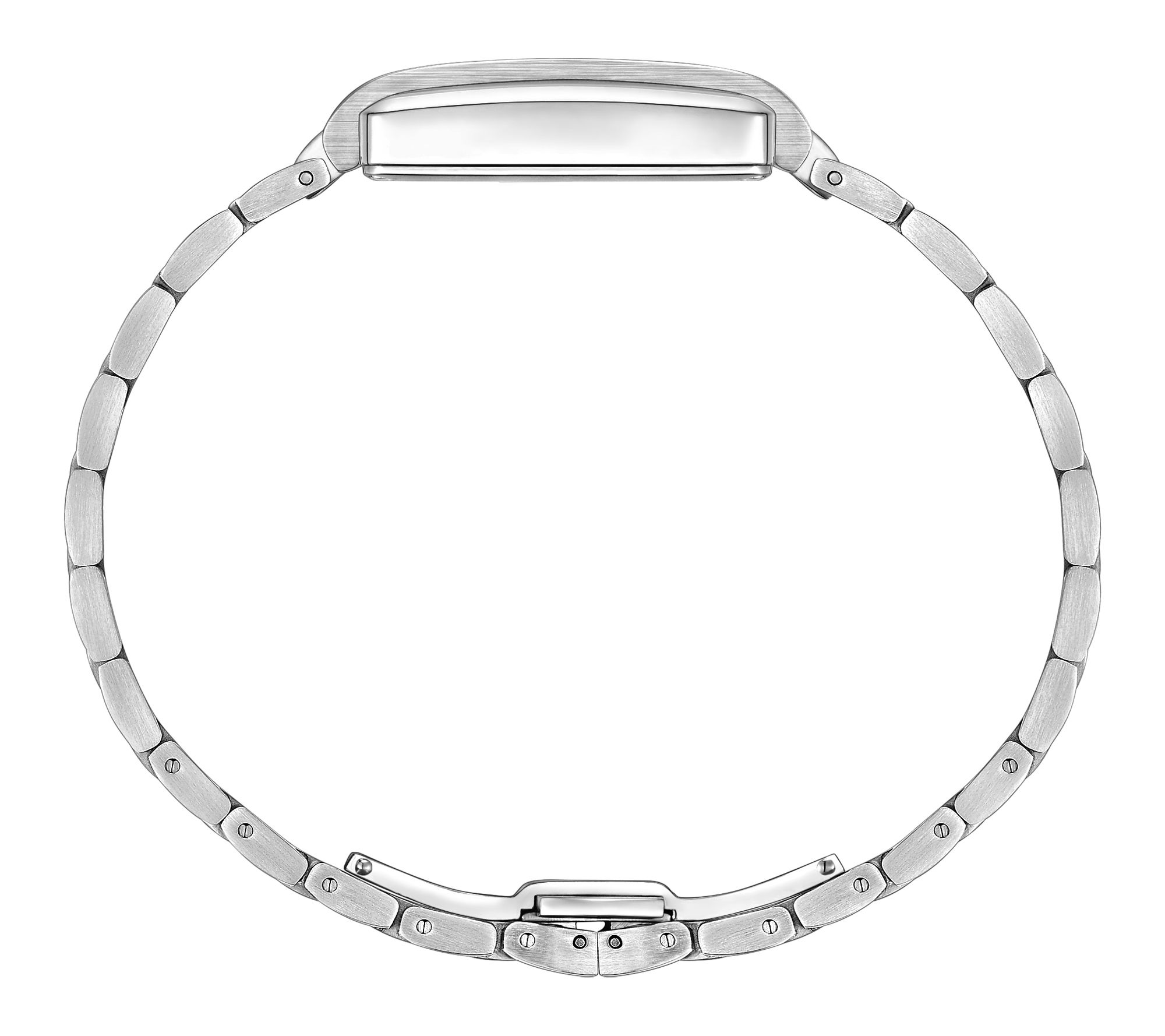 Case: softly rectangular, stainless steel, 23mm