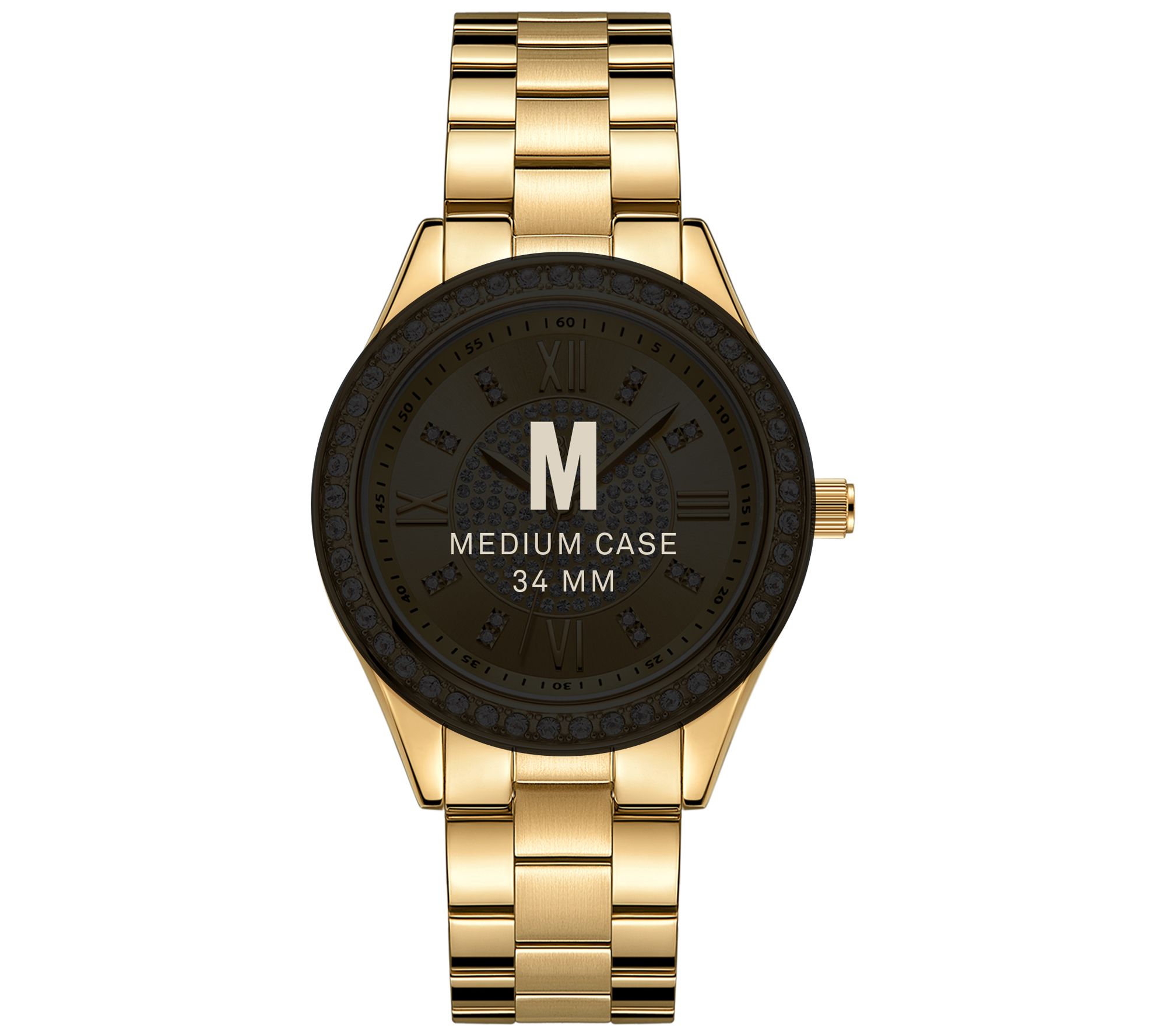 • Goldtone dial with crystal accents; goldtone Roman numeral and diamond accent hour markers; minute ma