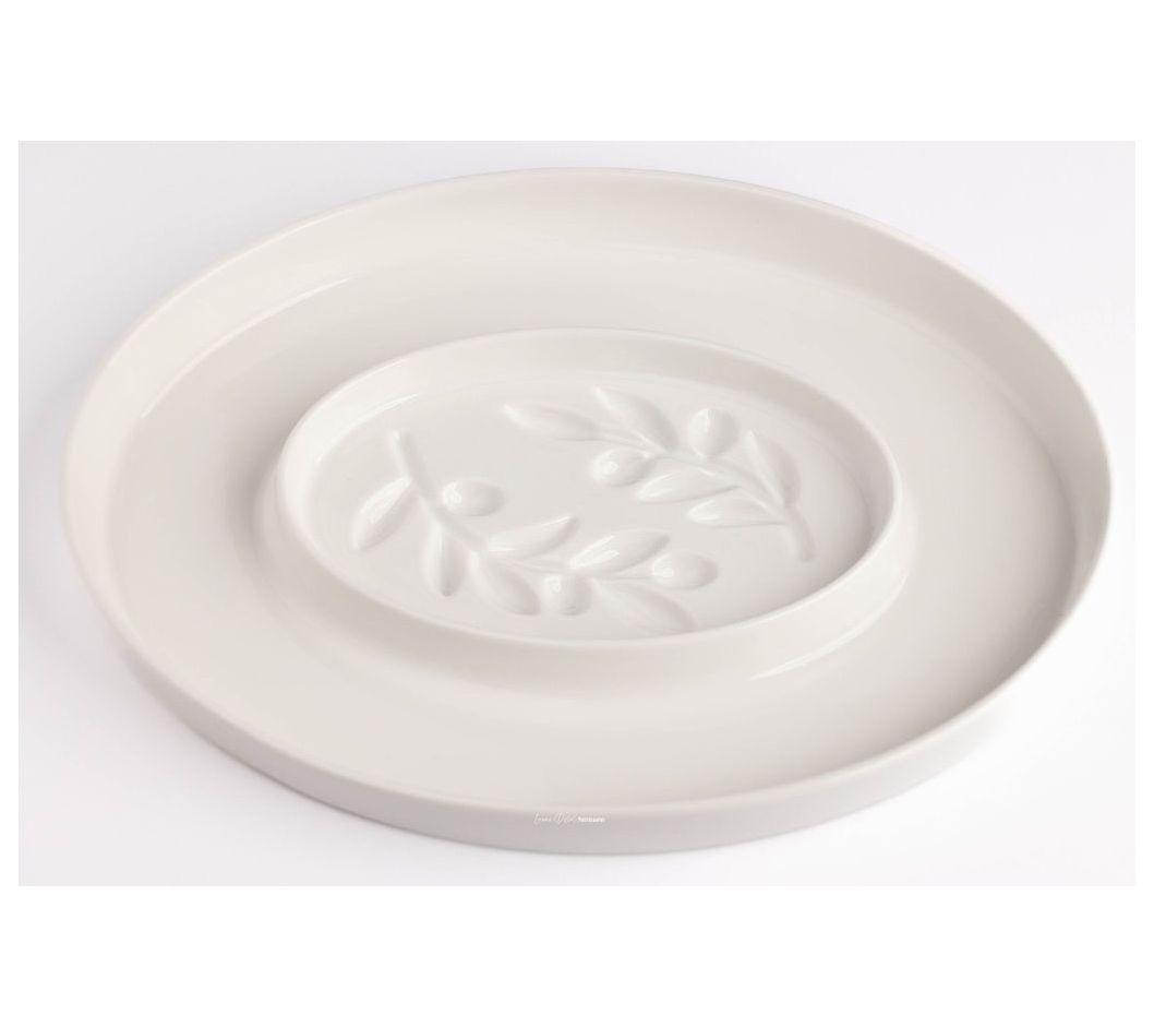 Specially designed for the perfect combination of olive oil and balsamic vinegar, this gourmet dipping platter allows you to savor the flavors of the Mediterranean and enjoy the art of bread dipping. From Jeanne Fitz.