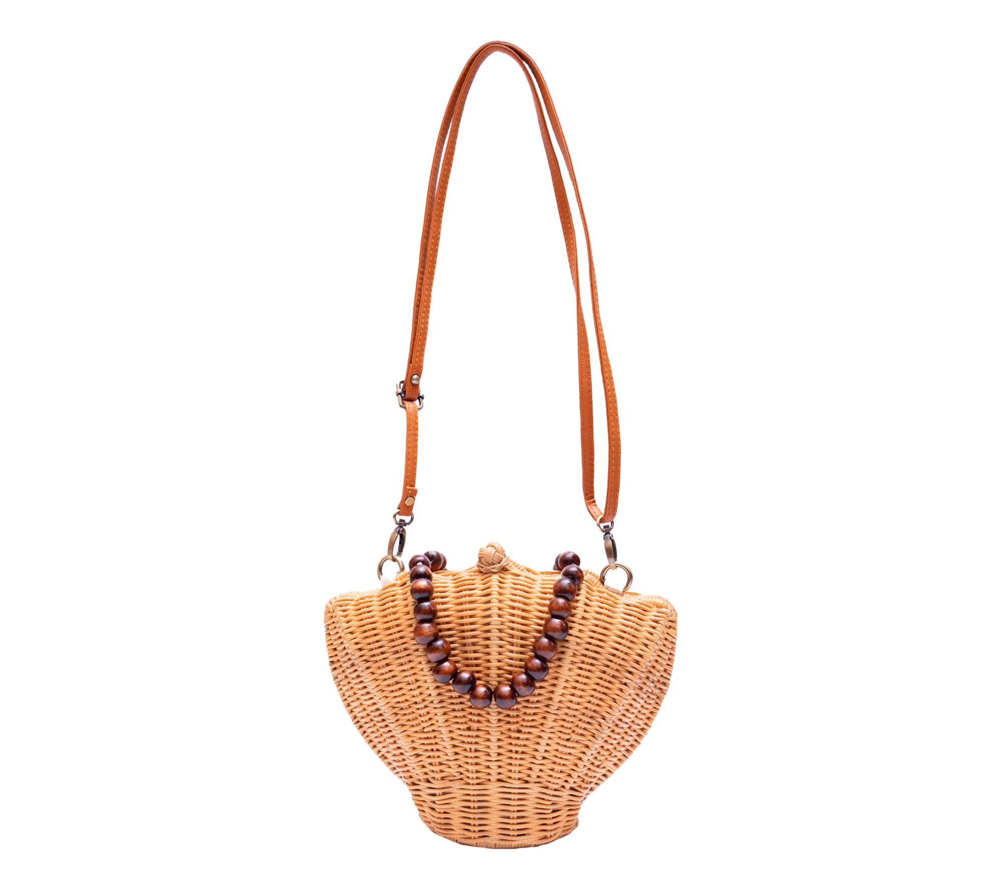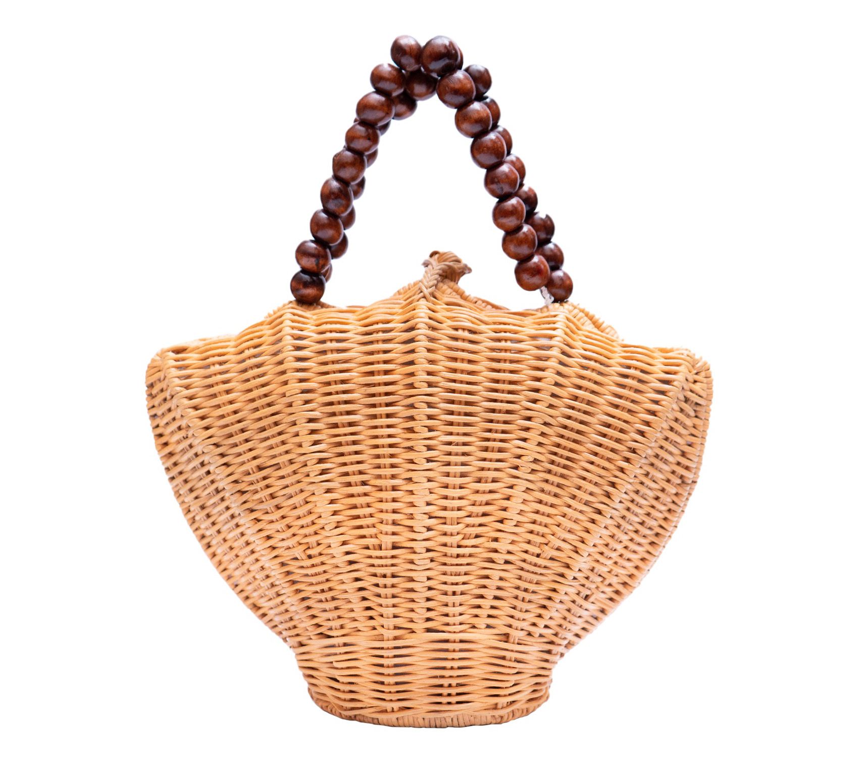 Introducing the Jelavu Arielle seashell rattan crossbody bag, a masterfully crafted accessory that captures the allure of coastal beauty. Its seashell-shaped silhouette, intricately woven with precision, radiates a sense of natural elegance. The wooden beaded handle adds rustic charm and ensures a stylish grip, while the detachable crossbody strap offers versatility for any occasion. From Jelavu.