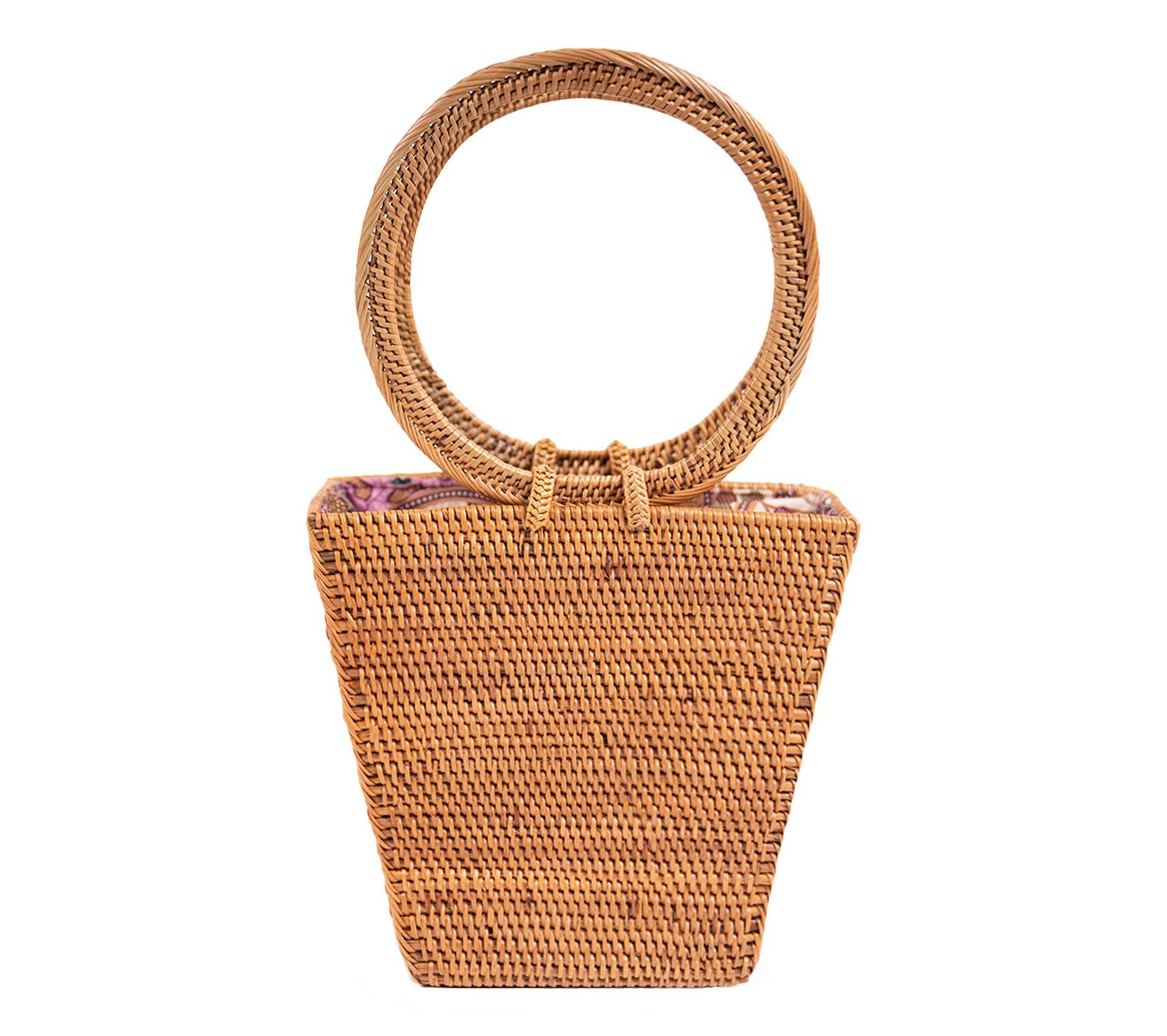 Step into style with the Jelavu Jibei rattan satchel bag, a small handheld masterpiece that captures attention effortlessly. Its distinctive triangular shape and round woven rattan handle blend natural aesthetics with modern flair, making it an ideal accessory for any outfit. From Jelavu.
