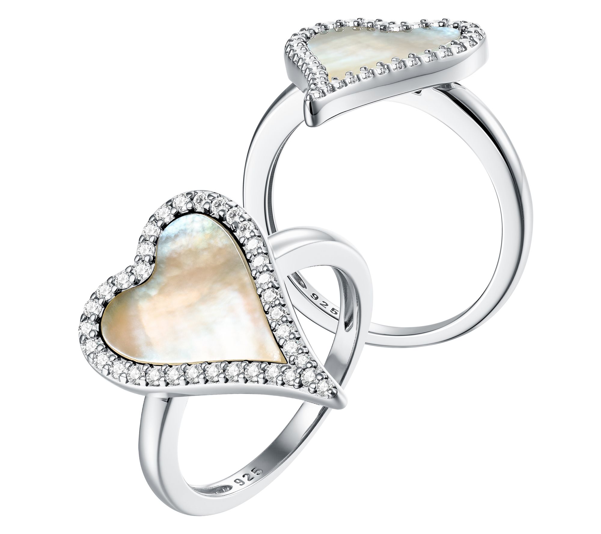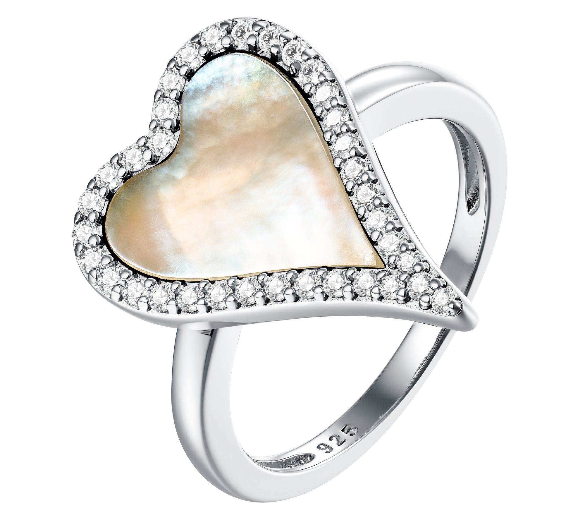 Heart-shaped lapis or mother of pearl center with white zircon pave-set halo