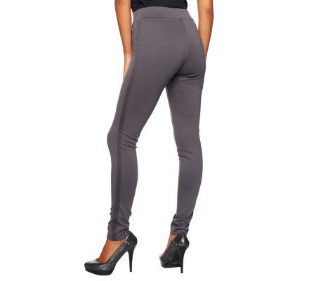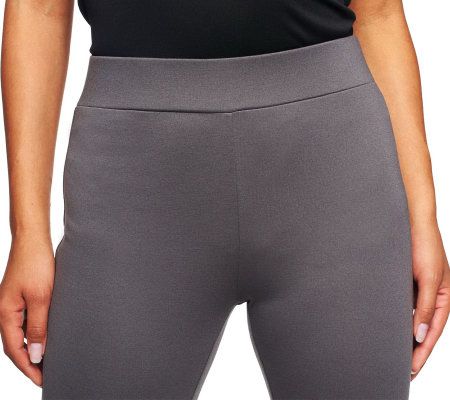 Legging, 2" wide self-fabric waistband and a 3/4" wide dyed-to-match satin ribbon along outer side seams