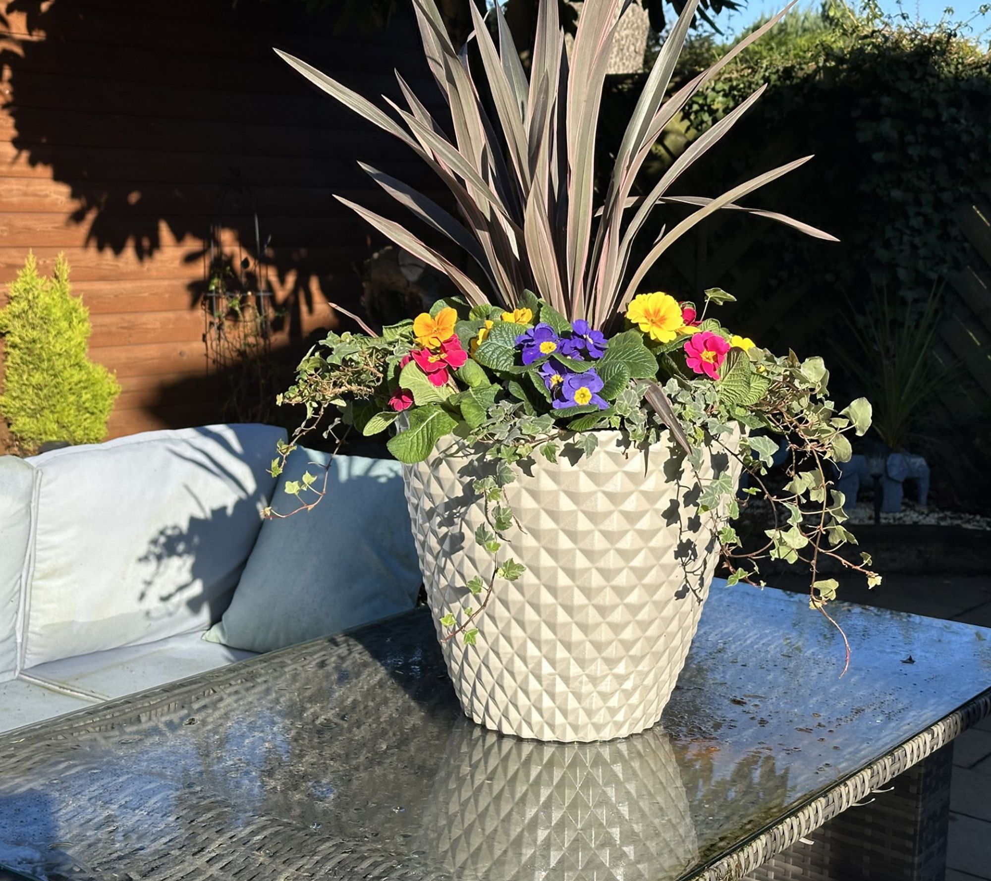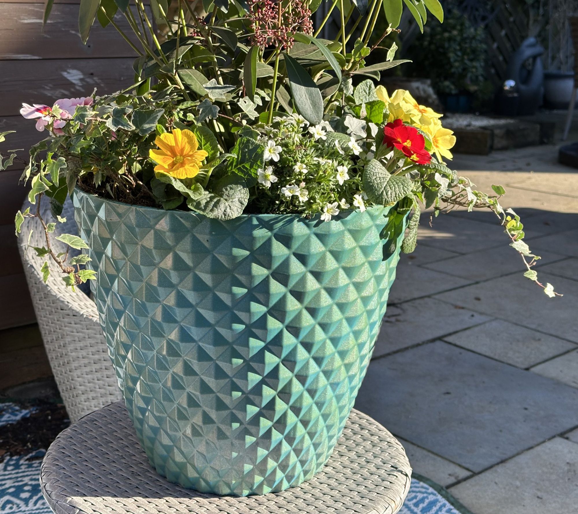 Upgrade your garden or living space with this set of two pearlescent diamond planters, perfect for bringing a pop of vibrant color to any spot. Their lightweight construction makes it simple to rearrange your floral displays, and a drainage hole helps keep plants healthy by letting excess water escape. From Jennings.