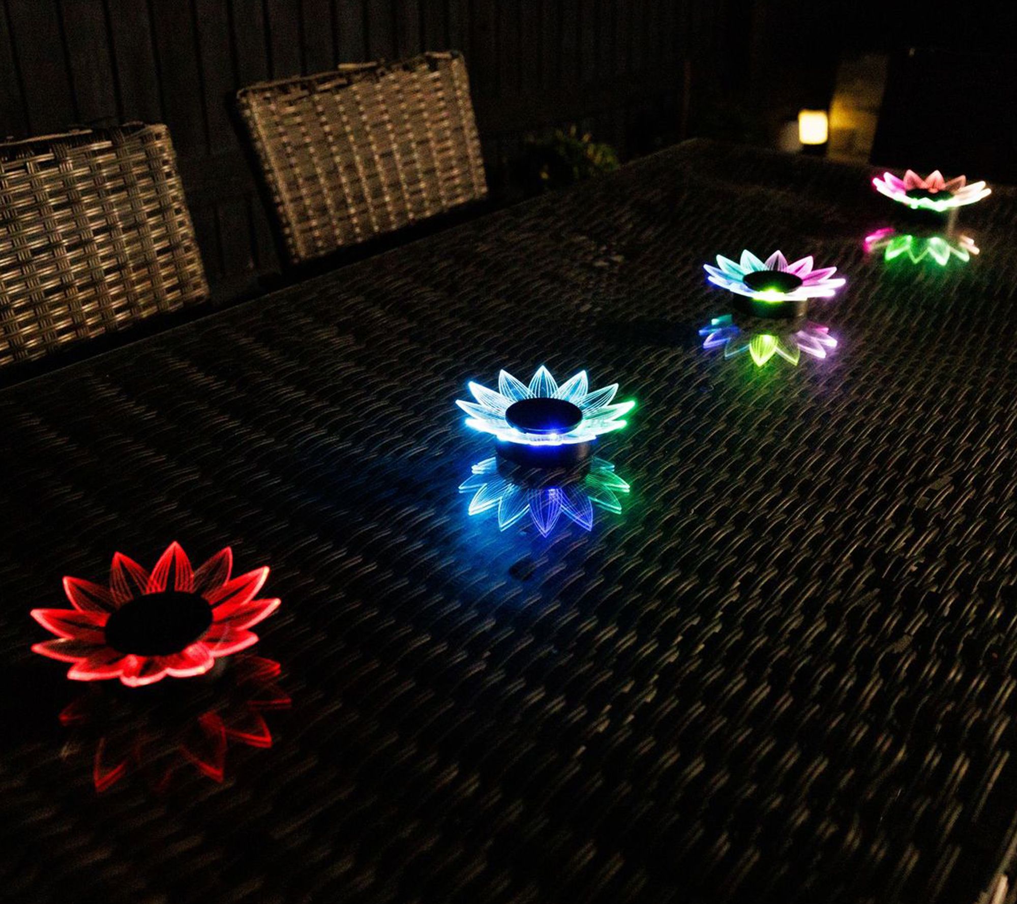 • Includes four Fiber Effect acrylic flower lights and four ground stakes