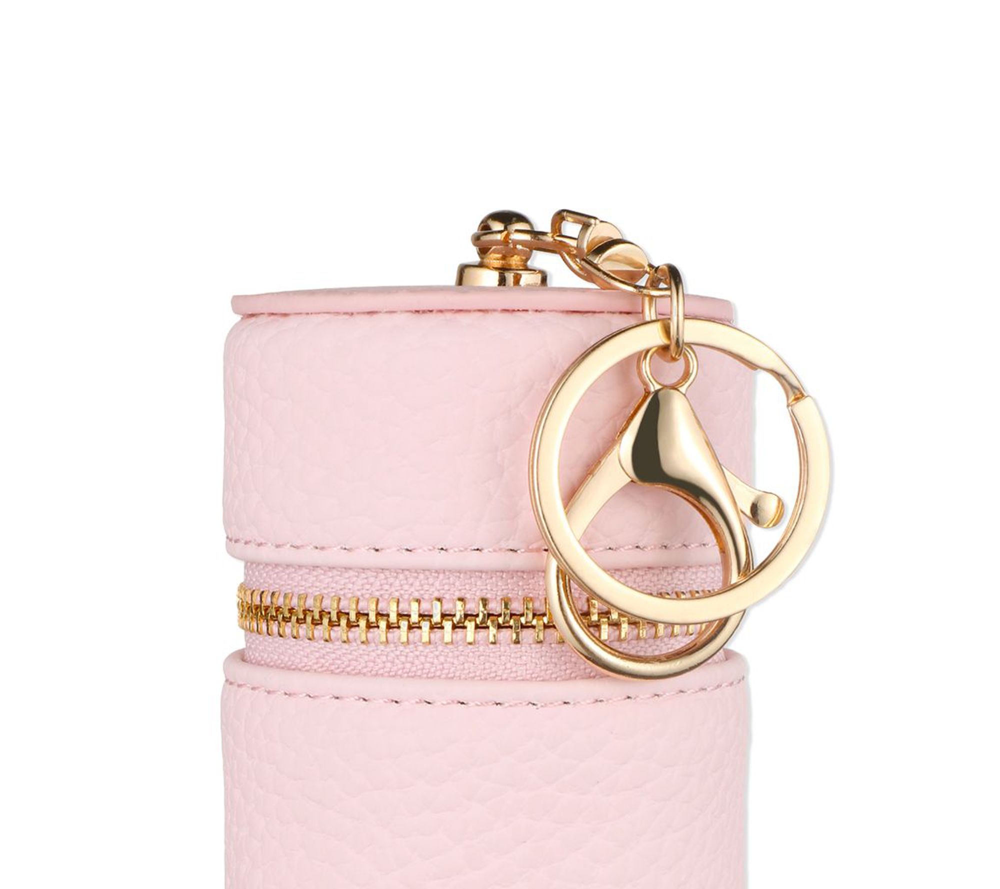 • Pink zippered case with keychain measures 4.25" x 2.2"