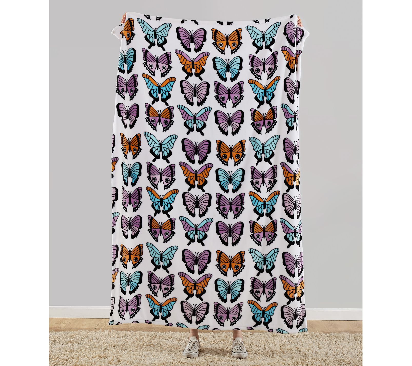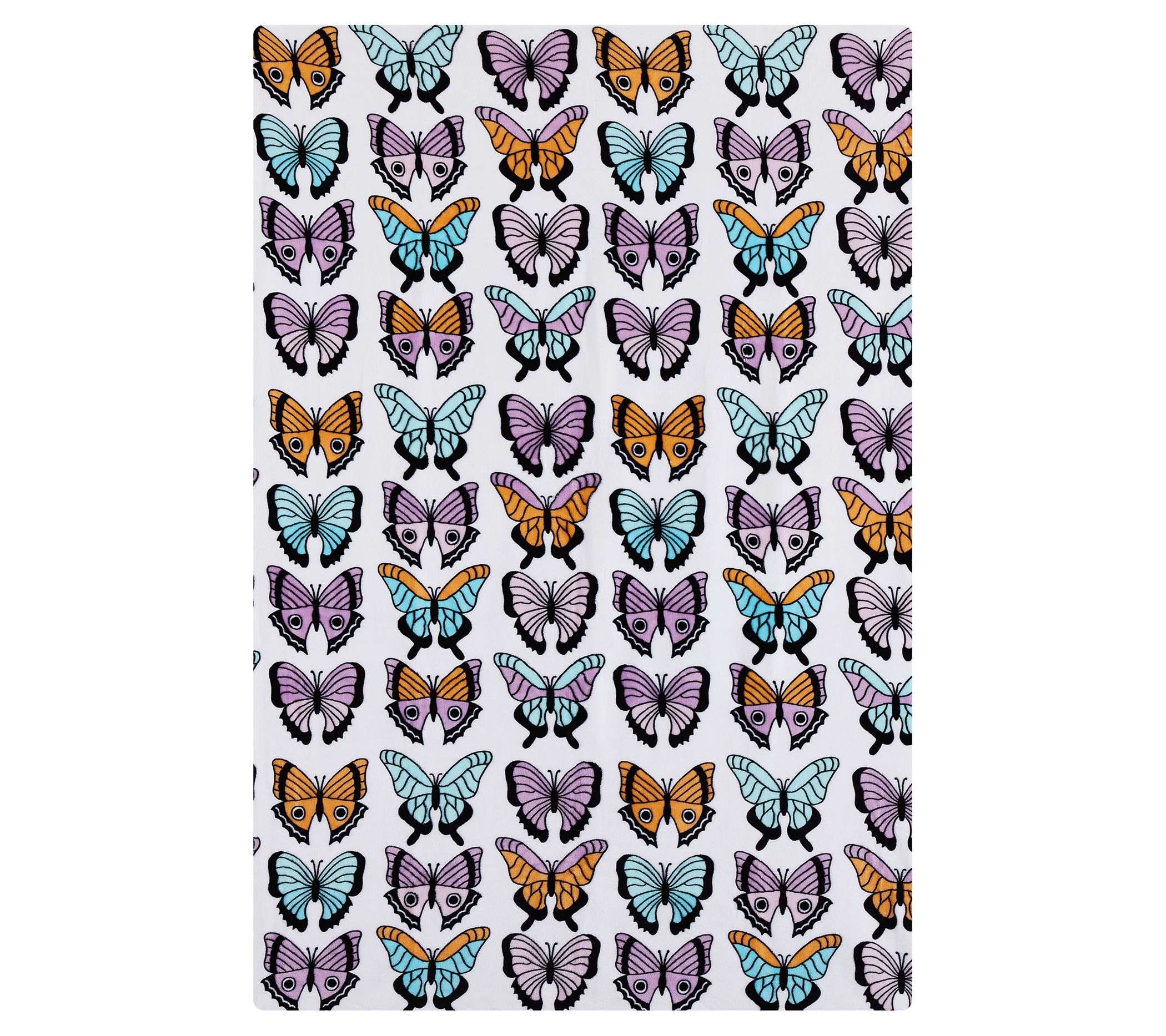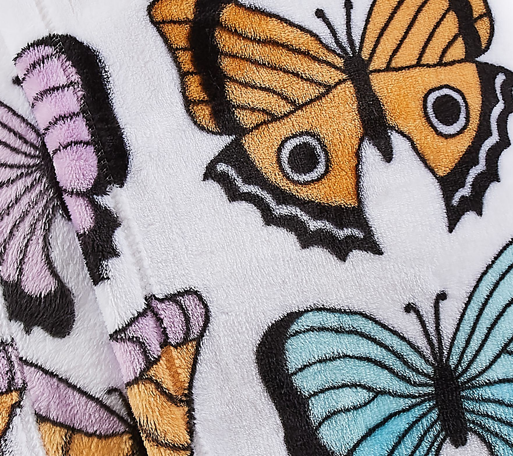 Plush fabric keeps you warm and toasty when you kick back and cozy up under this machine-washable throw adorned with a colorful butterfly print. From Jessica Simpson.
