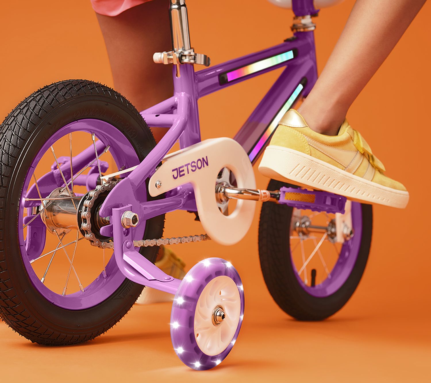 Your little one will thrill to the excitement of pedaling about on their first bike while integrated LEDs light up the ride with fun and color. From Jetson.