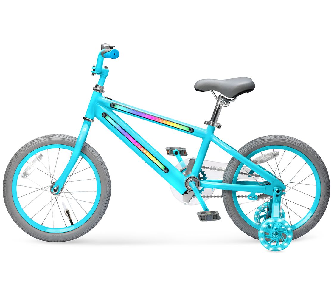 • Light-up frame, wheels, and removable training wheels