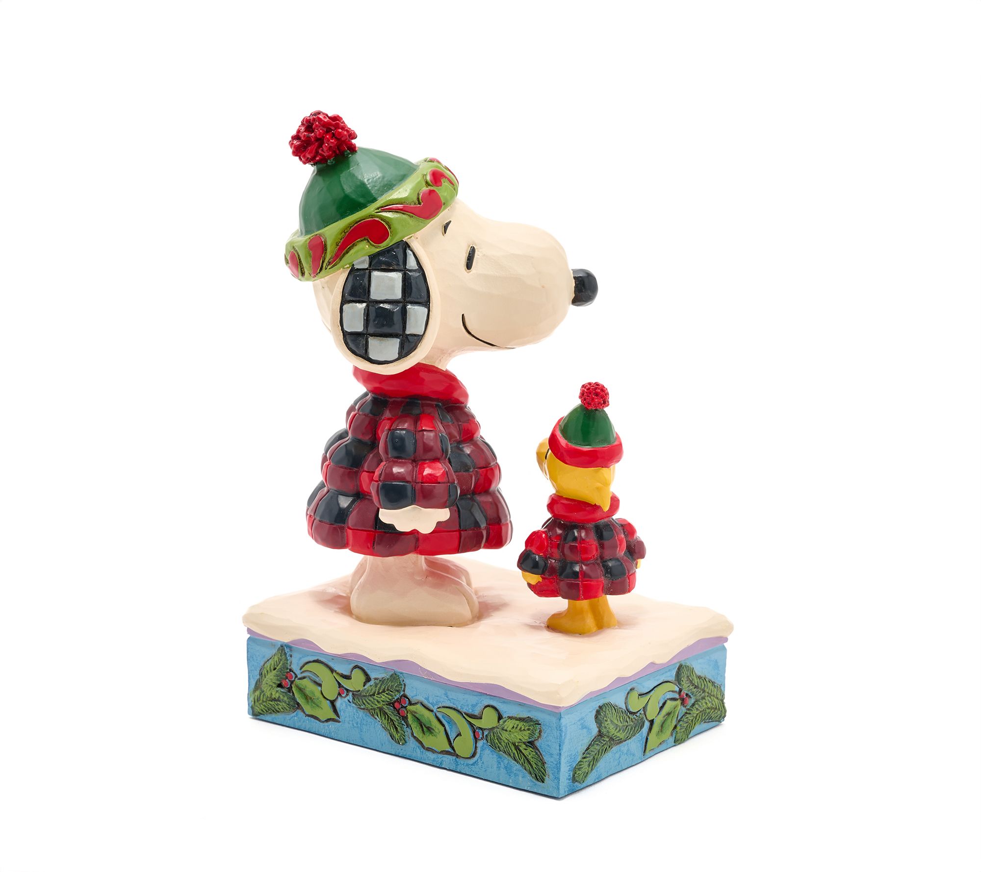 Snoopy and Woodstock are ready for snowy adventures, dressed in playful puffer jackets and bright knit caps as they share a fun-filled winter day together. This charming figurine brings whimsy and warmth to side tables, mantels, or bookshelf displays, capturing the joyful spirit of chilly days with friends. From Jim Shore.