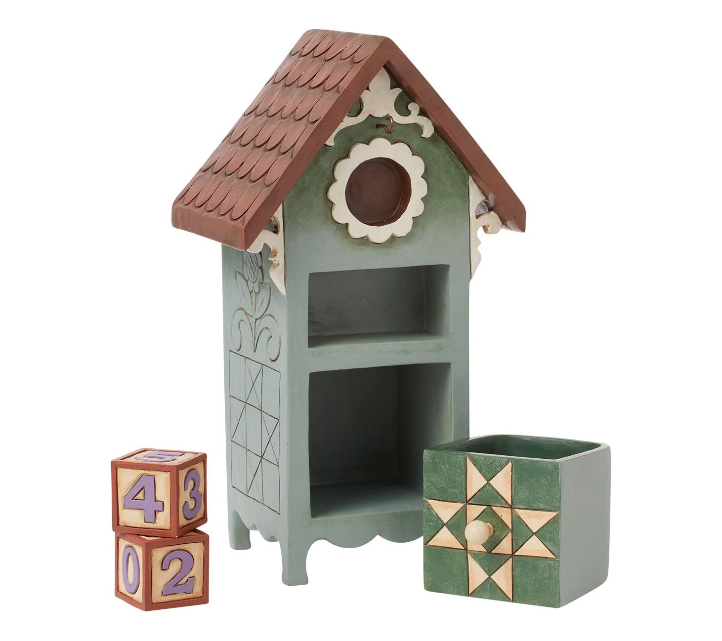 • Includes birdhouse figurine, resin blocks, and 12 interchangeable ornaments