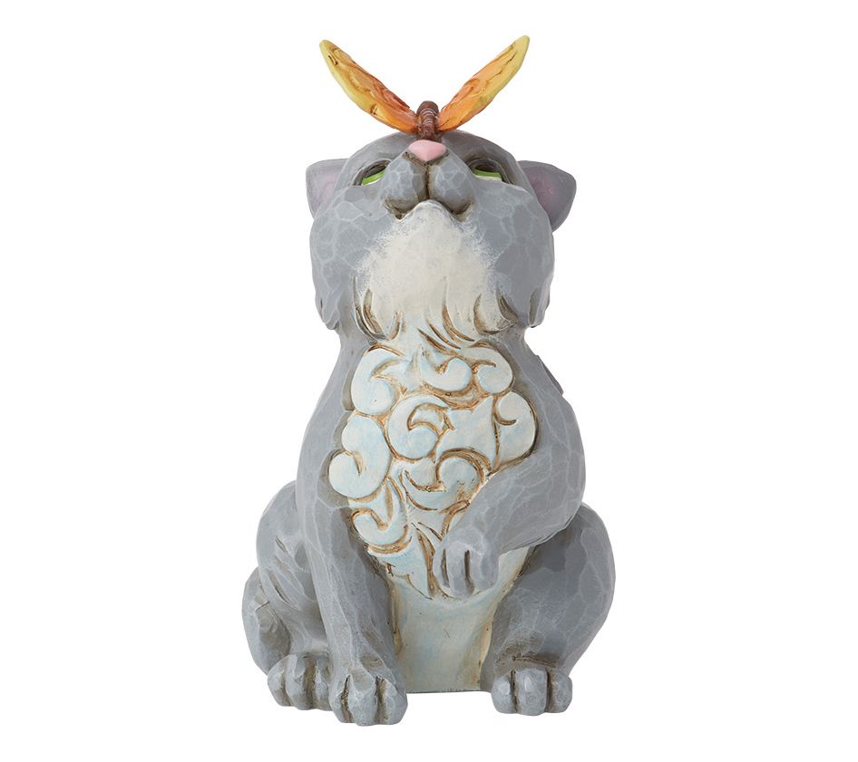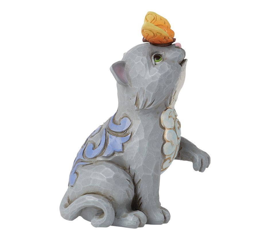 Bring a moment of unexpected enchantment to your home with this delightful Jim Shore mini figurine. This charming piece features a curious cat adorned with intricate rosemaling details, pausing to marvel at a delicate butterfly resting on its nose. It’s an adorable touch that adds warmth and whimsy to any space. From Jim Shore.