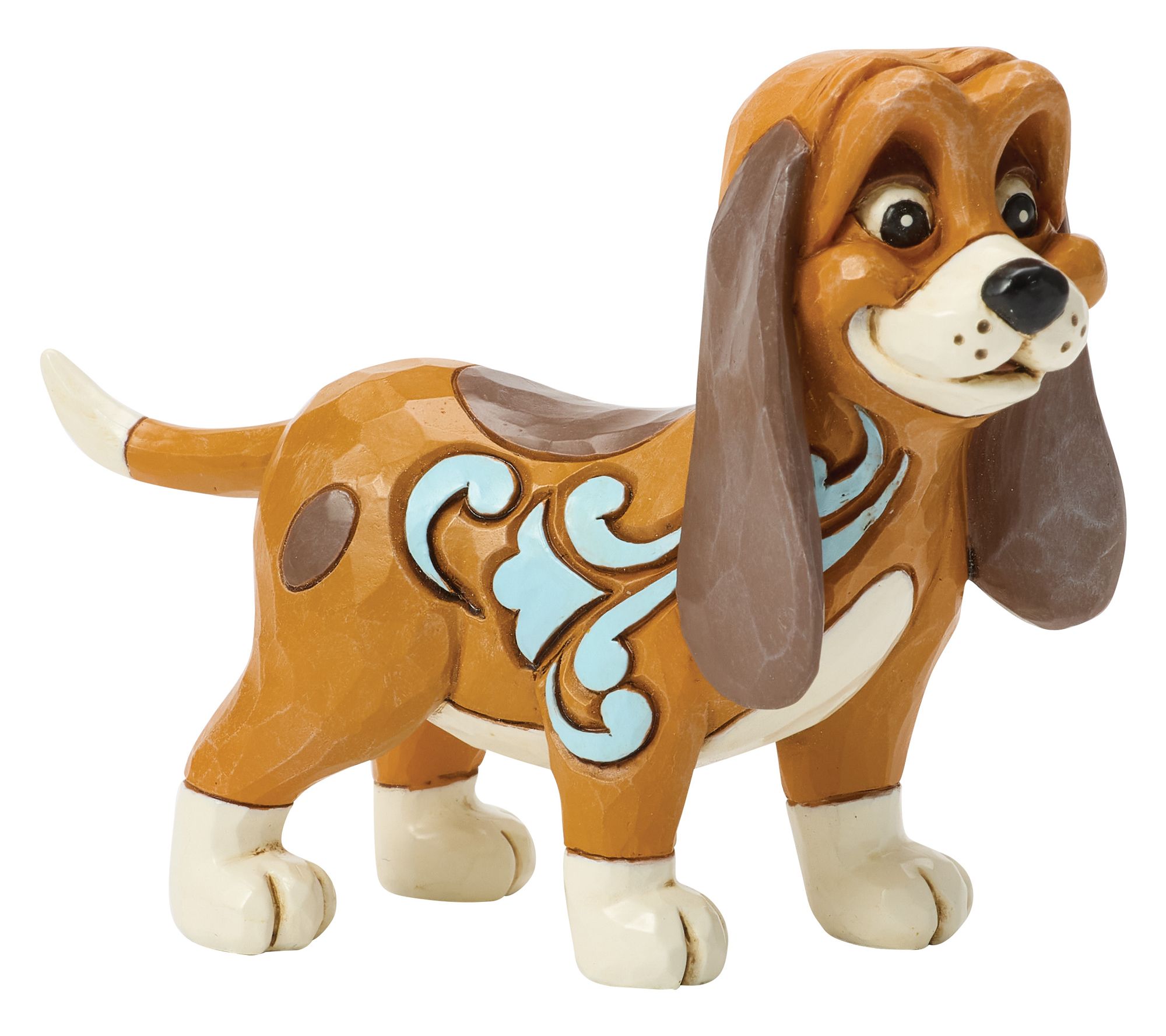 Whether creating a whimsical display or adding a dash of Disney magic to your shelves, this Copper mini figurine brightens every scene with intricate rosemaling patterns and a sweet, welcoming gaze. The beloved hound is ready to charm guests and spark memories of woodland adventures. From Jim Shore.