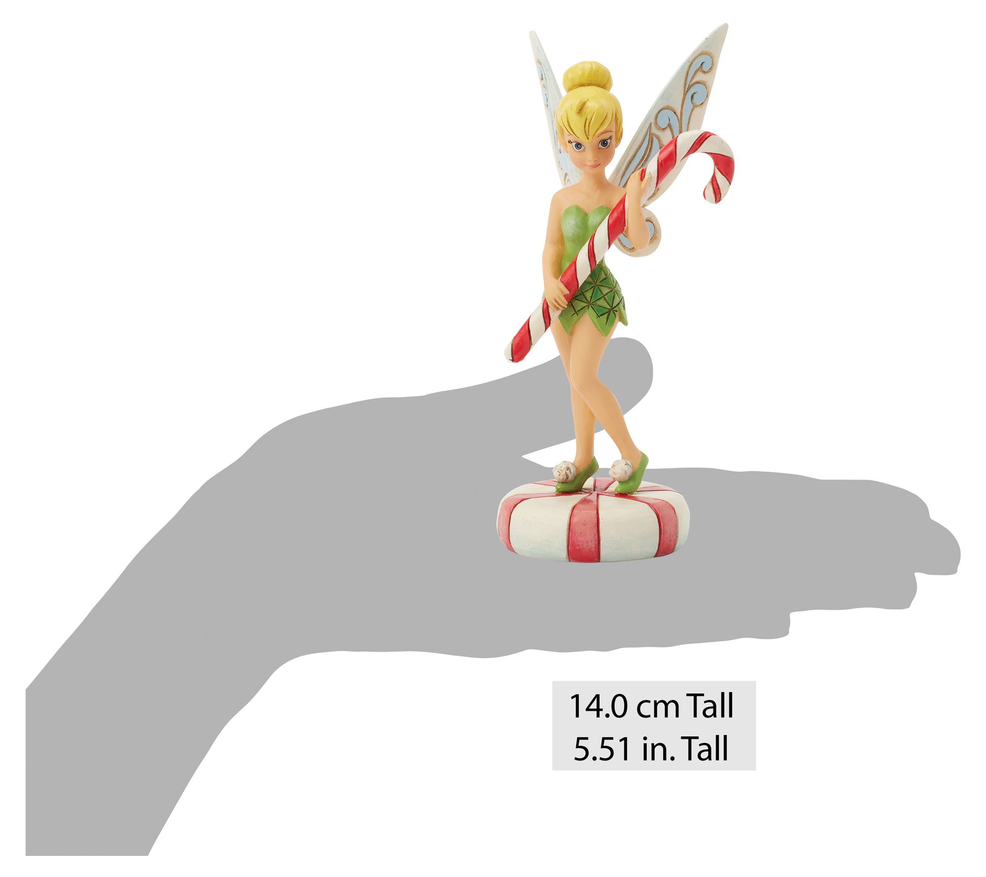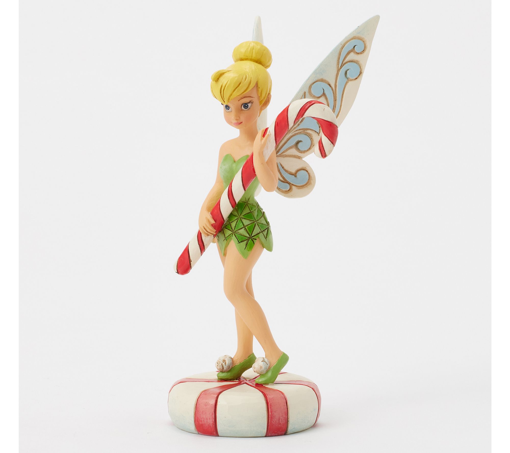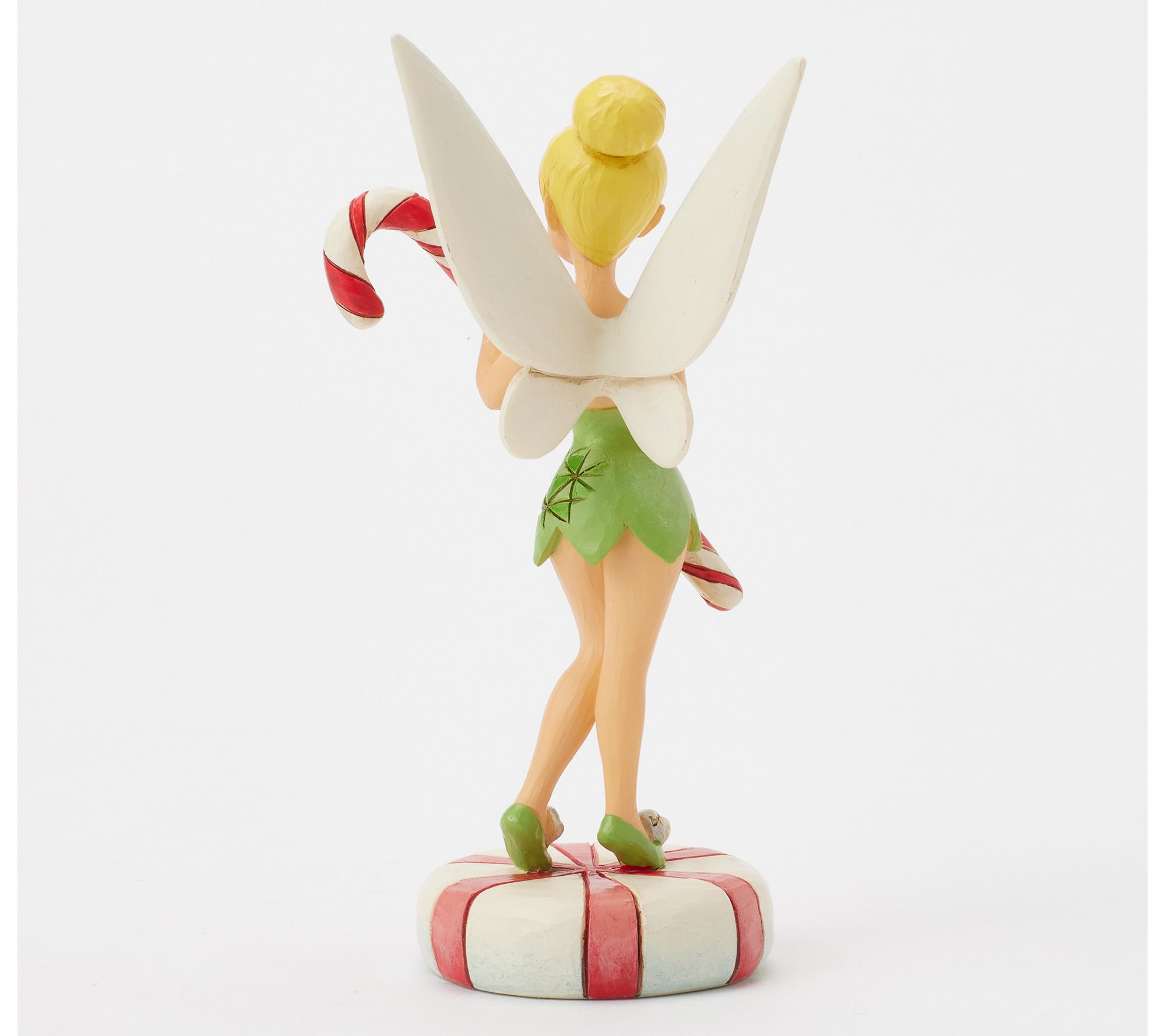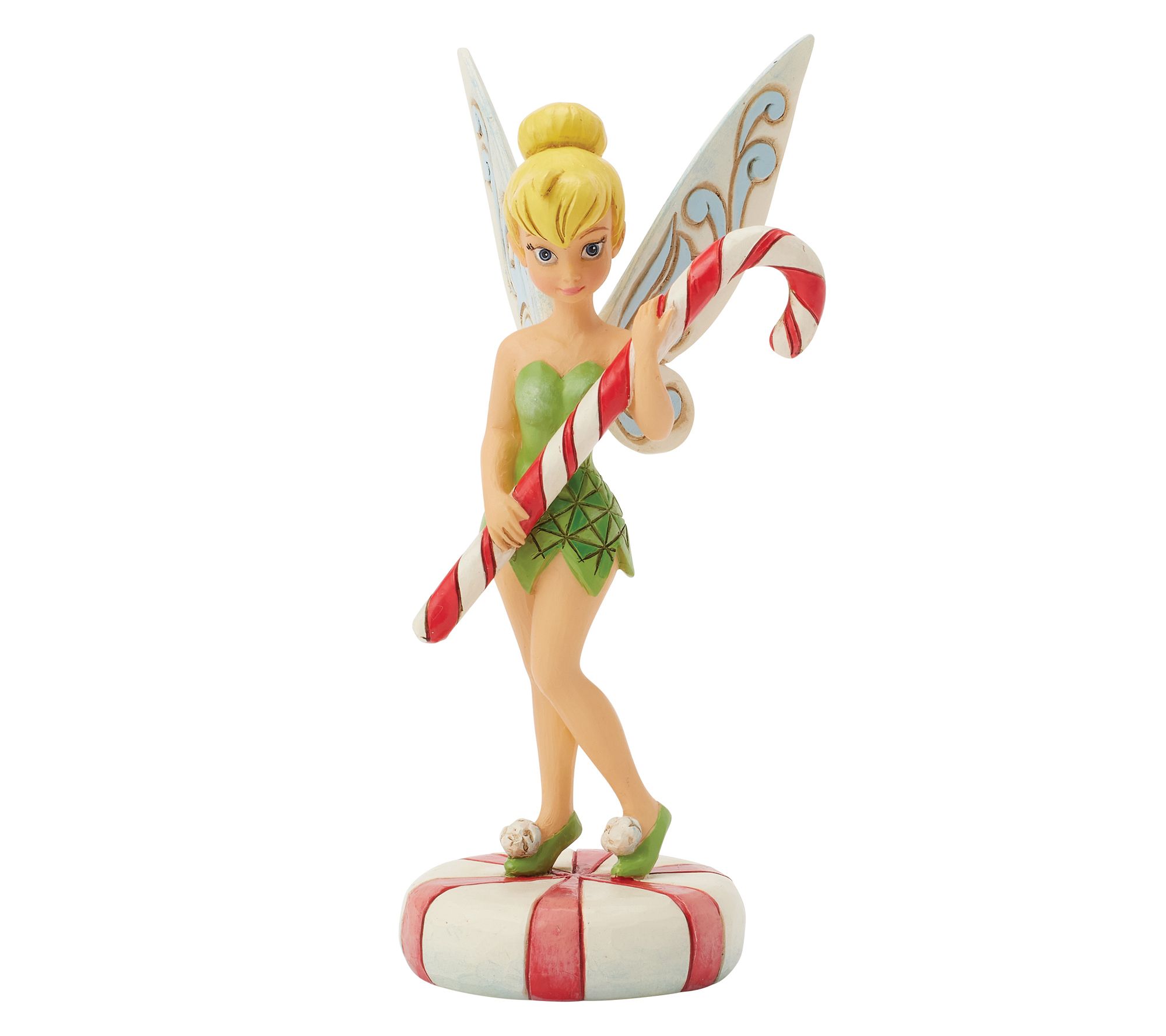 Holiday merriment comes to life when Tinker Bell perches atop a cheerful peppermint, gently holding a candy cane and glowing with wintry charm. Whether tucked on a mantel or nestled among festive displays, her pixie presence weaves enchantment through your seasonal decor. From Disney Traditions by Jim Shore.