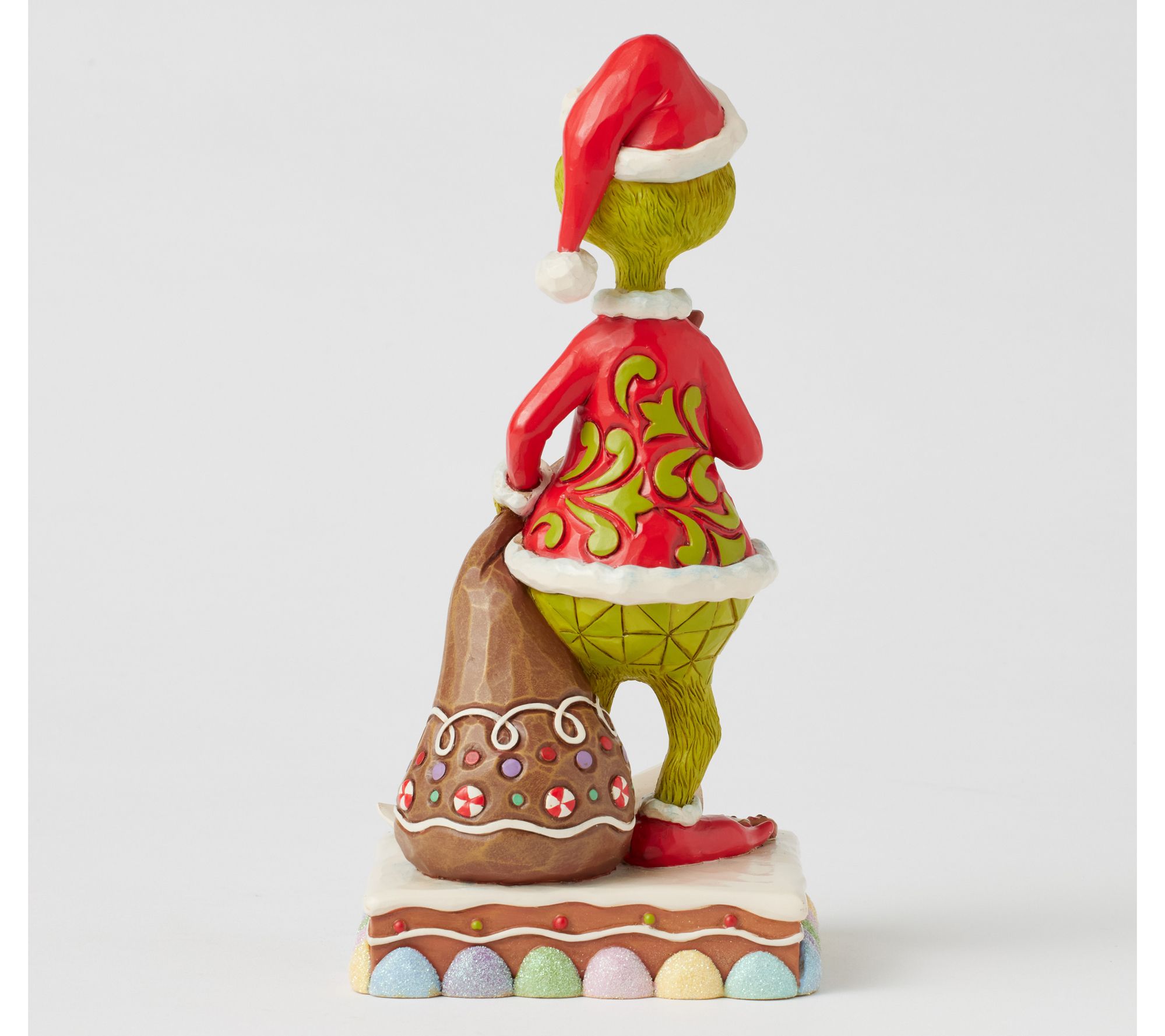 An evening by the fireplace feels even more cheerful when Dr. Seuss's classic character leans in for a gingerbread treat, his Santa sack and mischief in tow. Jim Shore's signature rosemaling and sculpted details capture that moment when the holidays become all about family fun -- and a little laughter. Place this whimsical figurine by your cookie platter or gift display for instant conversation. From Jim Shore.