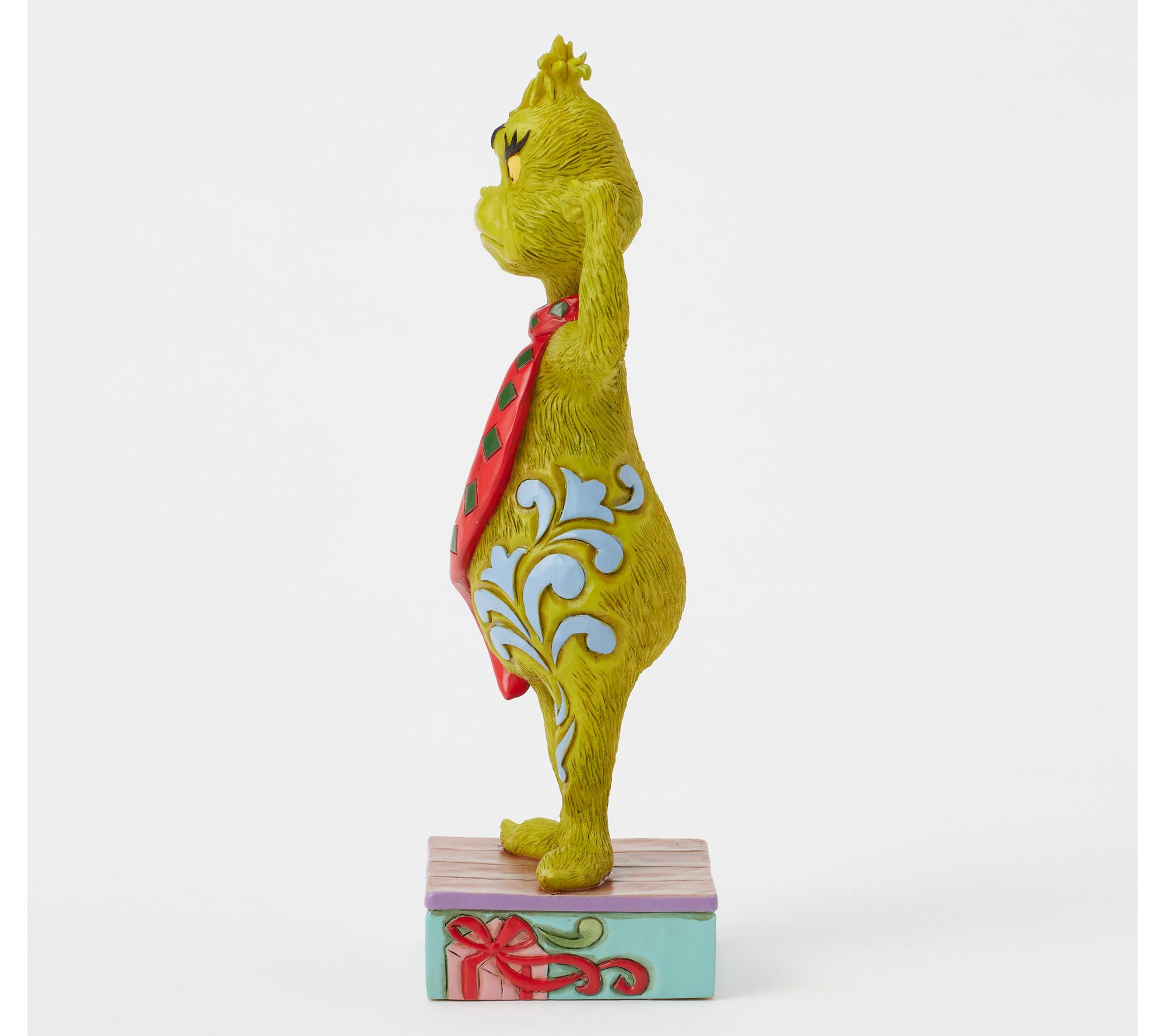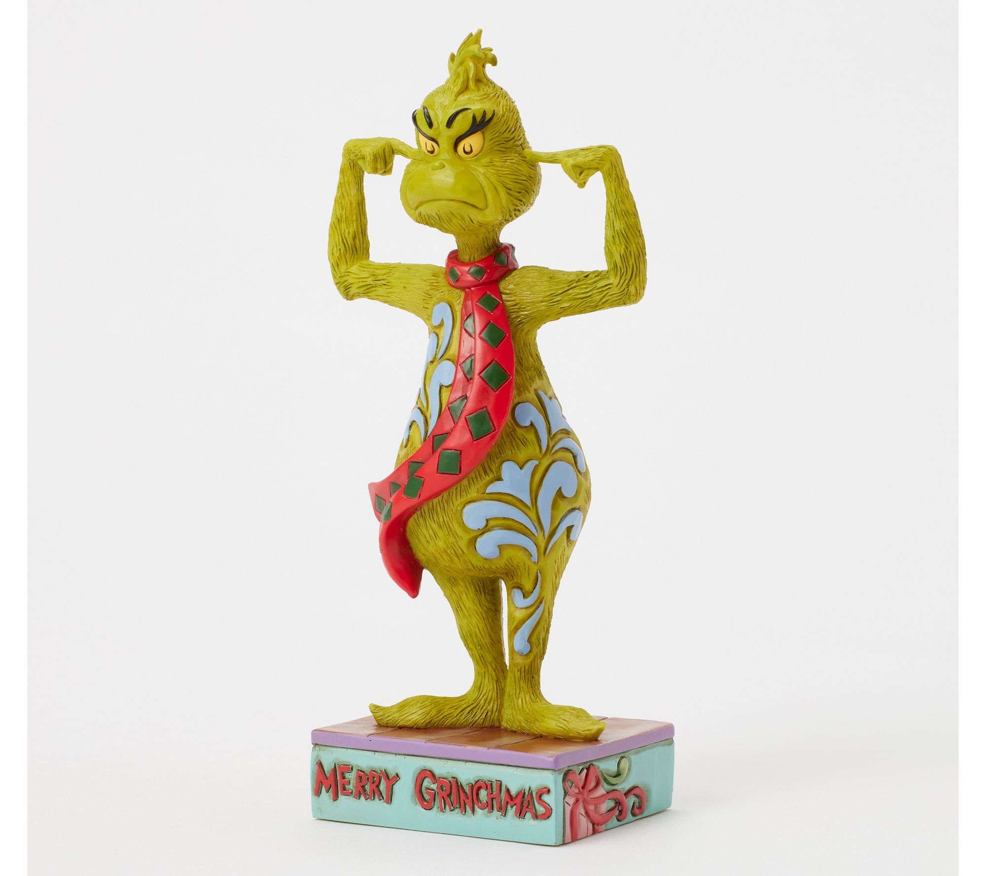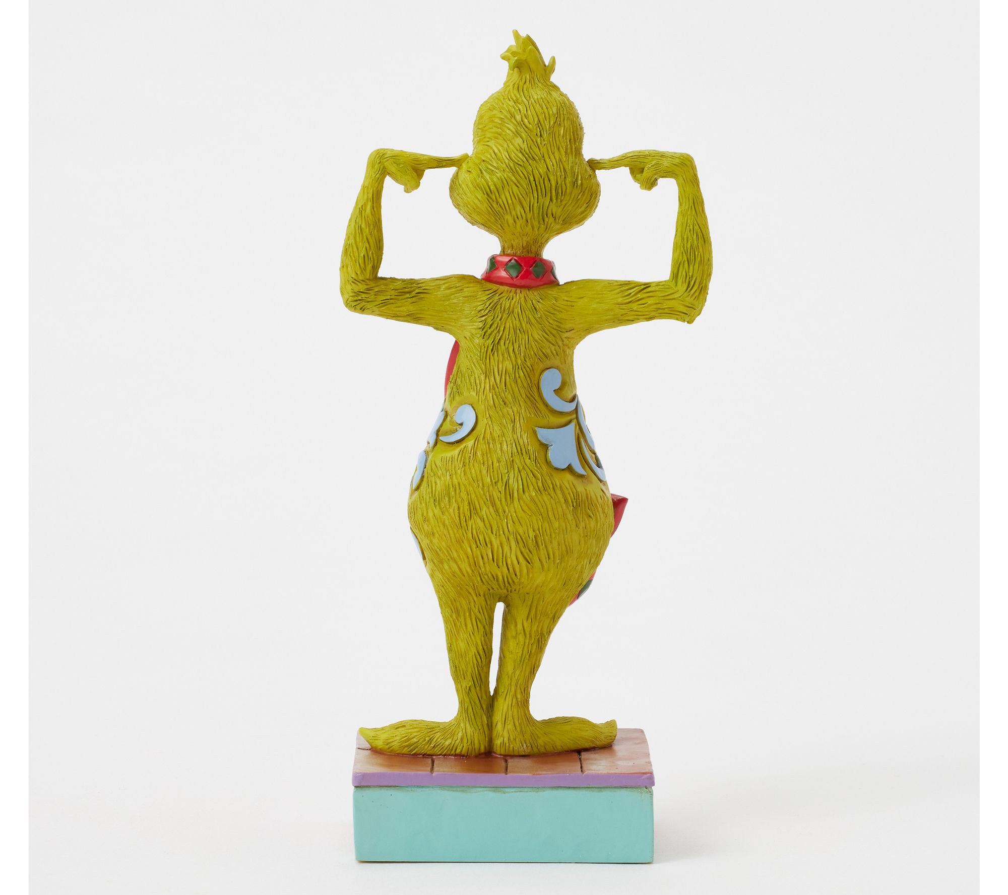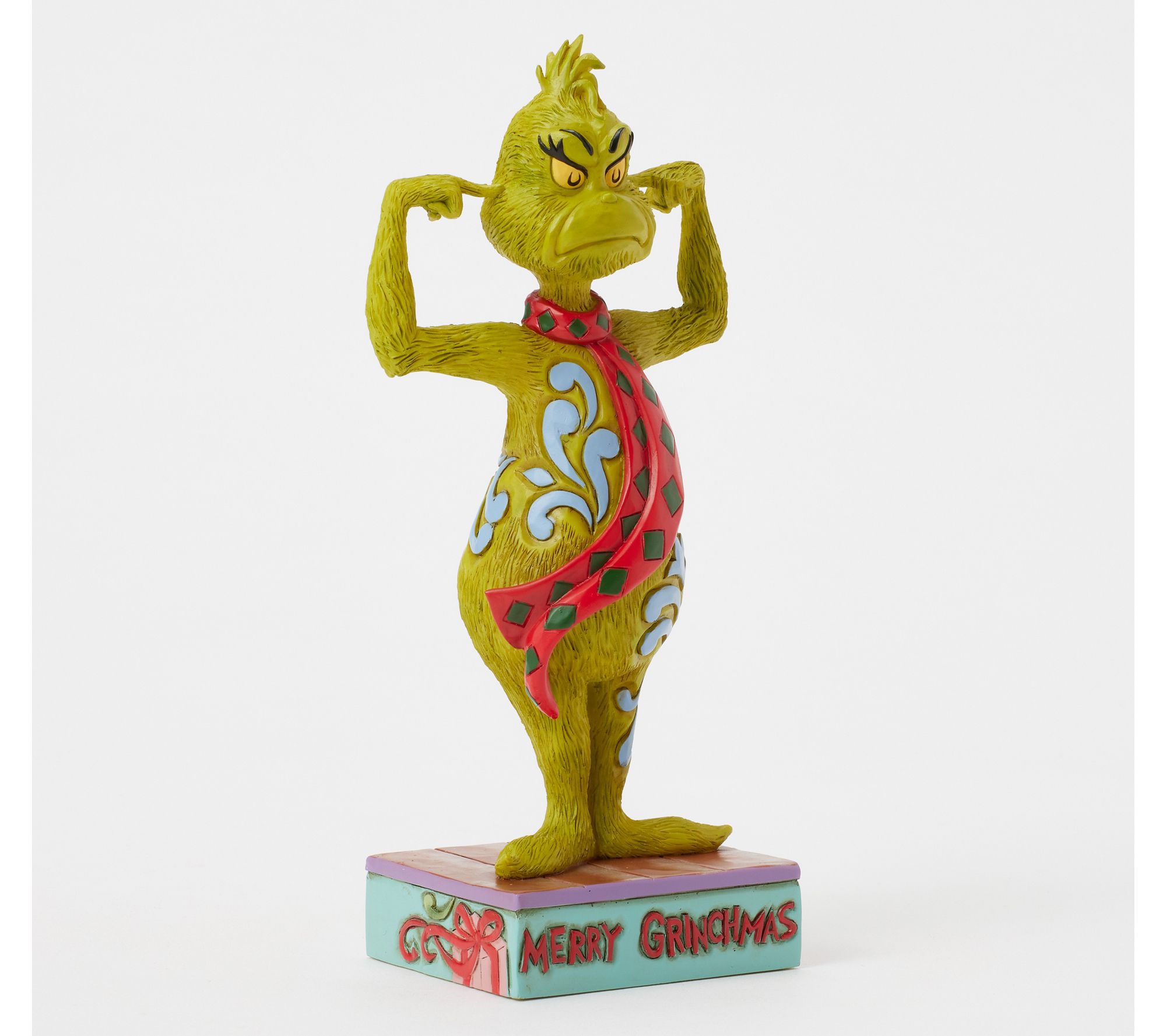 Holiday gatherings feel a little brighter with a mischievous grin from the Grinch as he plugs his ears, fed up with all the festive noise. Displaying his patterned scarf and classic frown, this playful piece sparks conversations and brings a smile to anyone passing by. From Jim Shore.