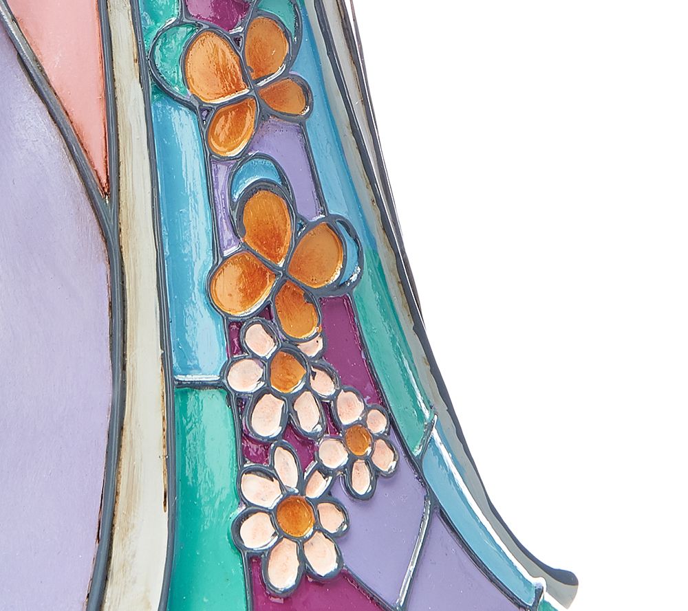 Handcrafted with stained glass-inspired designs and Jim Shore's signature rosemaling motif