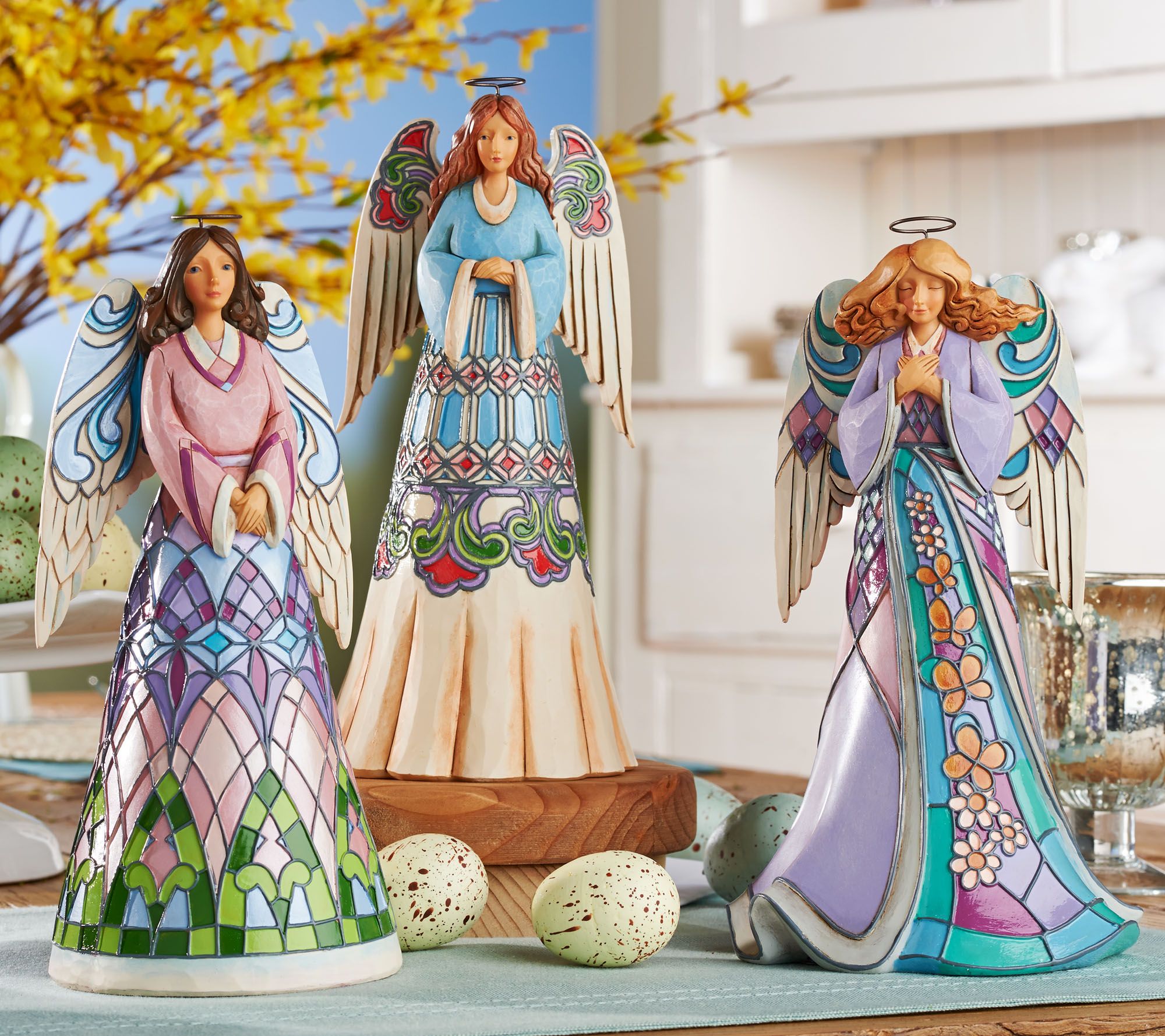 A heartfelt reminder of the power of faith, love, and eternal light. This handcrafted angel brings to mind the ornate, colorful stained glass windows found in many older churches--as well as the comfort and unconditional love found in such places of worship. From the Heartwood Creek Collection by Jim Shore.