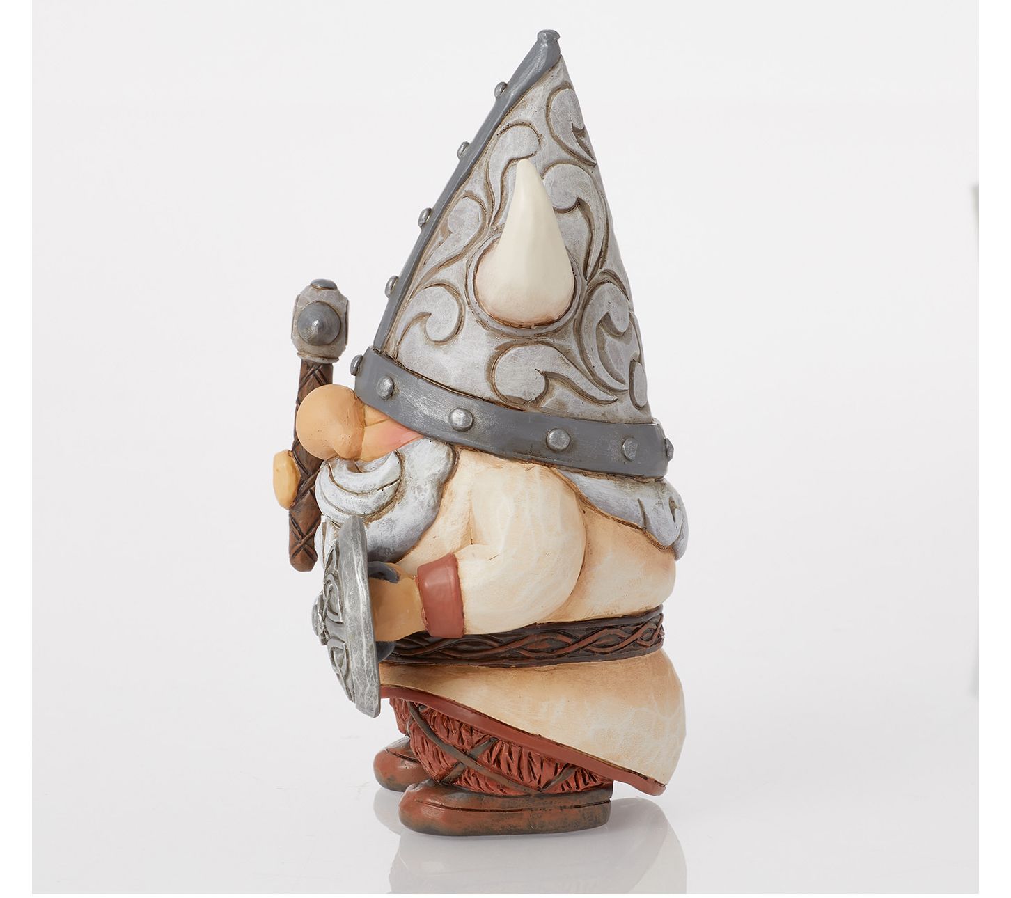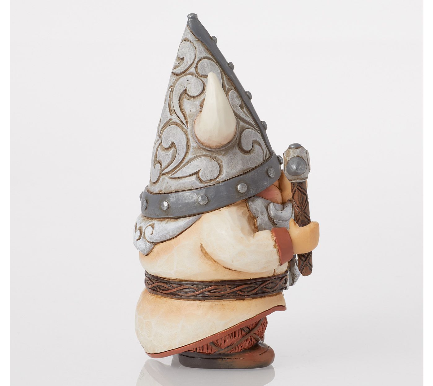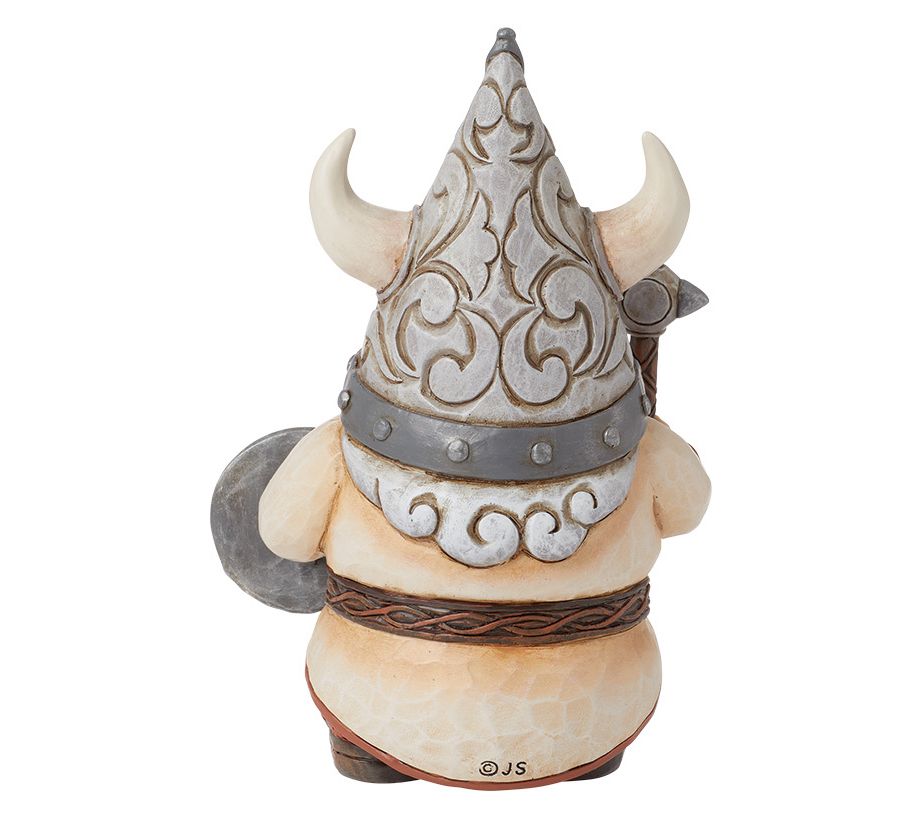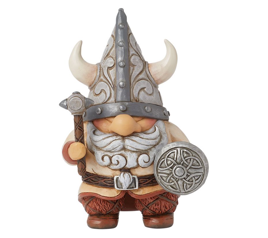Add a touch of Norse mythology to your home decor with this Viking gnome figurine. Featuring a curly beard, horned helmet, and a fierce uniform, this intricately detailed piece brings the spirit and power of Viking legends to life. Picture it sitting on your bookshelf, guarding your treasures with an axe and a patterned shield. From Jim Shore.