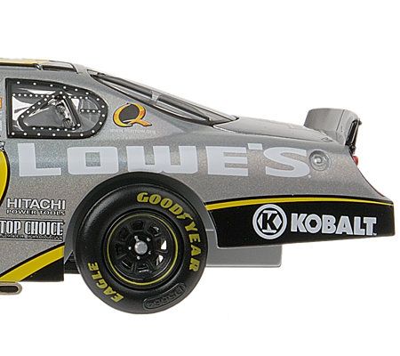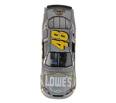 Celebrate victory! This 1:24 scale replica of Nextel Cup champ Jimmie Johnson's #48 Lowe's Champion 2006 Chevrolet Monte Carlo SS is a must-have for race fans, done in a sleek Mesma chrome finish. Tampo-printed graphics include Lowe's and 2006 champion logos.