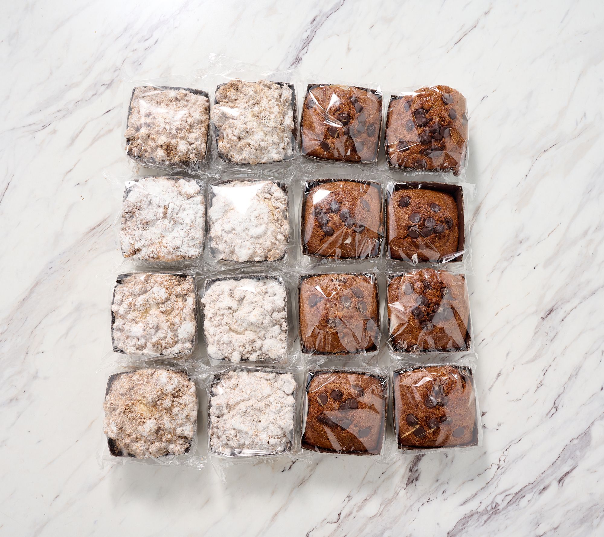 • Combo: eight cinnamon and eight cranberry orange streusel crumb cakes; or eight cinnamon and eight banana chocolate chip crumb cakes