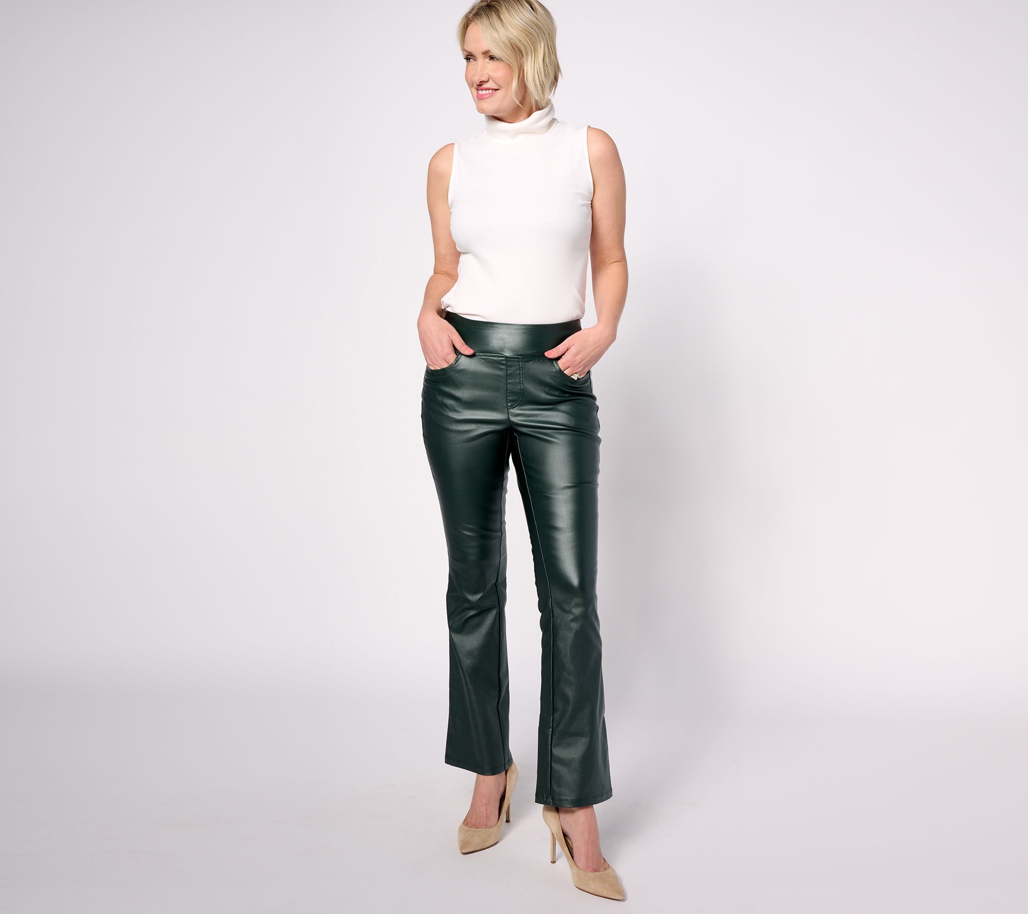 Didn't think you had a rebellious side? Yeah you do. Slide into these flared leather-look pants and defy norms, break out of your denim-on-the-daily box, and enjoy getting in touch with your maverick moment. You do you so well. From Jingle Belles by Kim Gravel.