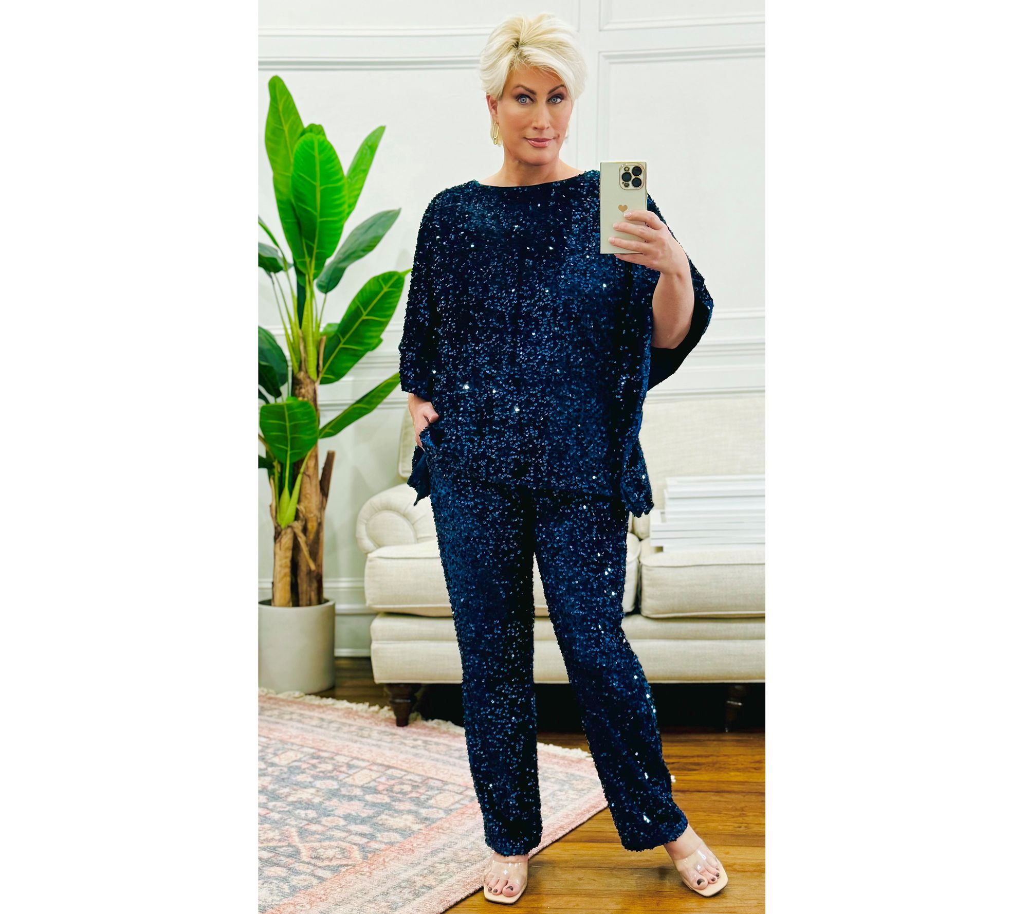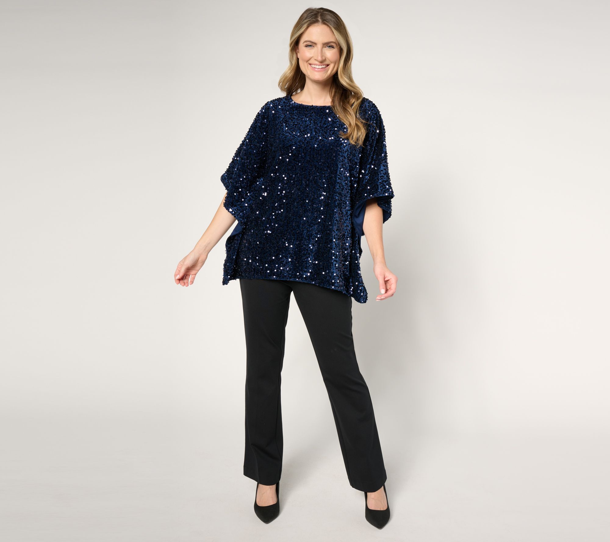 Have friends invited you to join the festivities? Tell them you'll be there with Jingle Belles on when you make this paillette velvet poncho a part of your celebratory capsule wardrobe. The low-effort/high-style sequined design turns your everyday denim, ponte pants, and trousers into a whole spirited style moment. From Jingle Belles by Kim Gravel.
