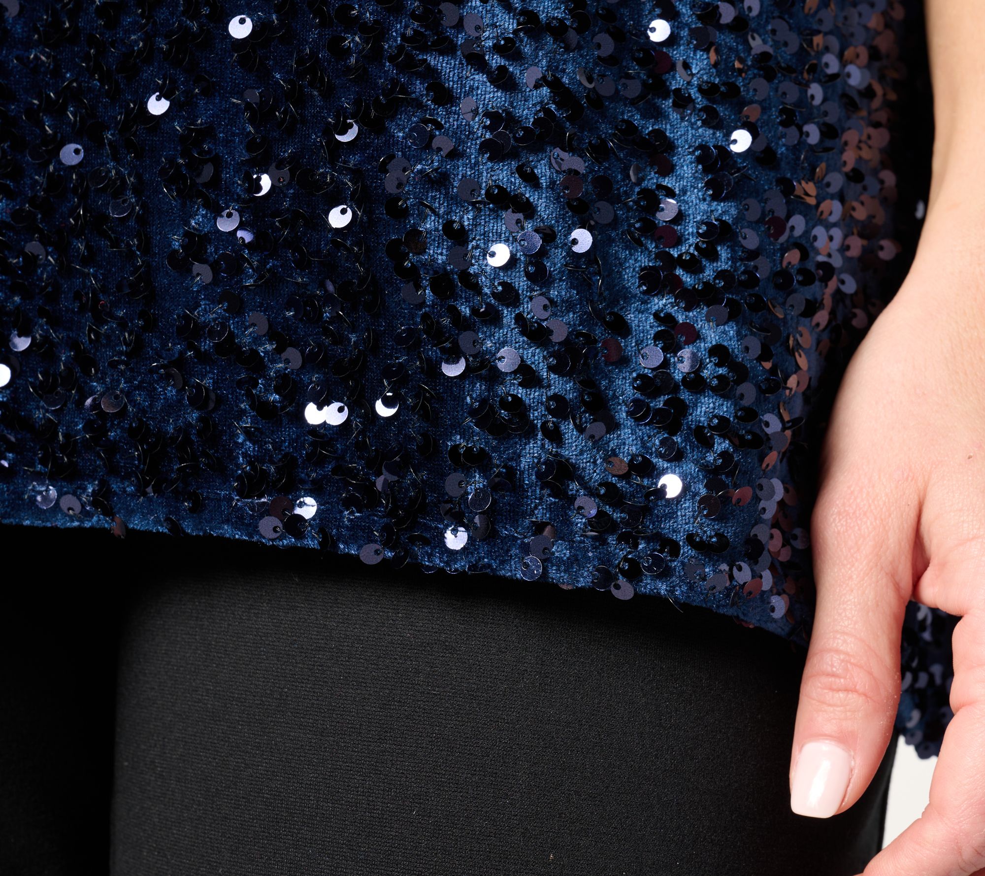 Features: allover sequin paillette, poncho style, boatneck, straight bottom hem