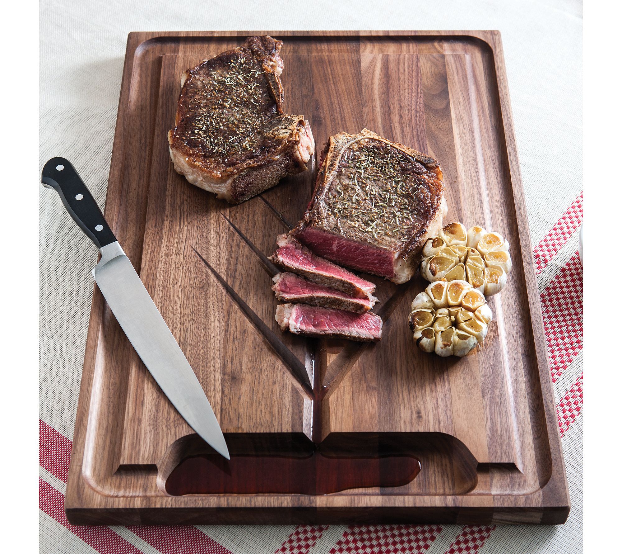 As comfortable on the dining table as it is on the countertop, this walnut carving board features an ample juice groove to keep messes at bay and silicone feet to protect counters and tables. Perfect for the home chef, it also makes a great gift for weddings, engagements, and more. From JK Adams.