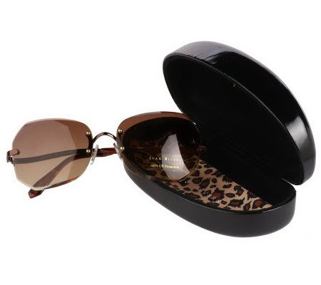 Idol eyes. Star style begins with these sunglasses, fabulously fashioned with metal arms and frameless, diamond-cut lenses with beveled edges. From the Joan Rivers Classics Collection(R).