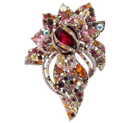 Don't have enough crystals in your life? This dazzling brooch is just what you've been waiting for! Its floral leaf design is positively bursting with vibrant crystals in shades of pink, yellow, amber, clear, purple, fuchsia, and peach for an irresistibly dazzling accent. From the Joan Rivers Classics Collection(TM).