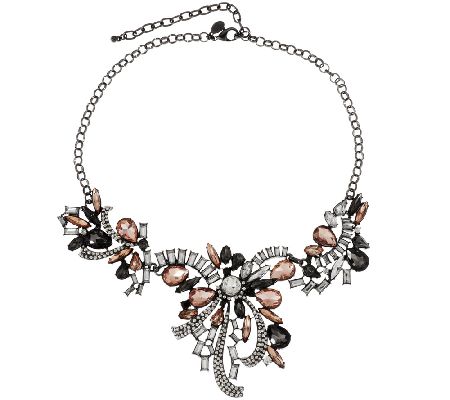 Perk up everything from a LBD to a shirt and blazer with this Joan Rivers Crystal Ribbons statement necklace. The antique-inspired bib design glimmers with crystals in various shapes and sizes for an awe-inspiring look. From the Joan Rivers Classic Collection(R).