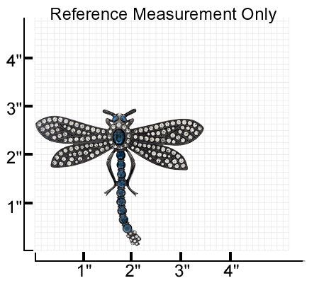 Dragonfly with round, clear crystals on its wings, body, and tail; oval and round colored crystals on body, tail, and eyes