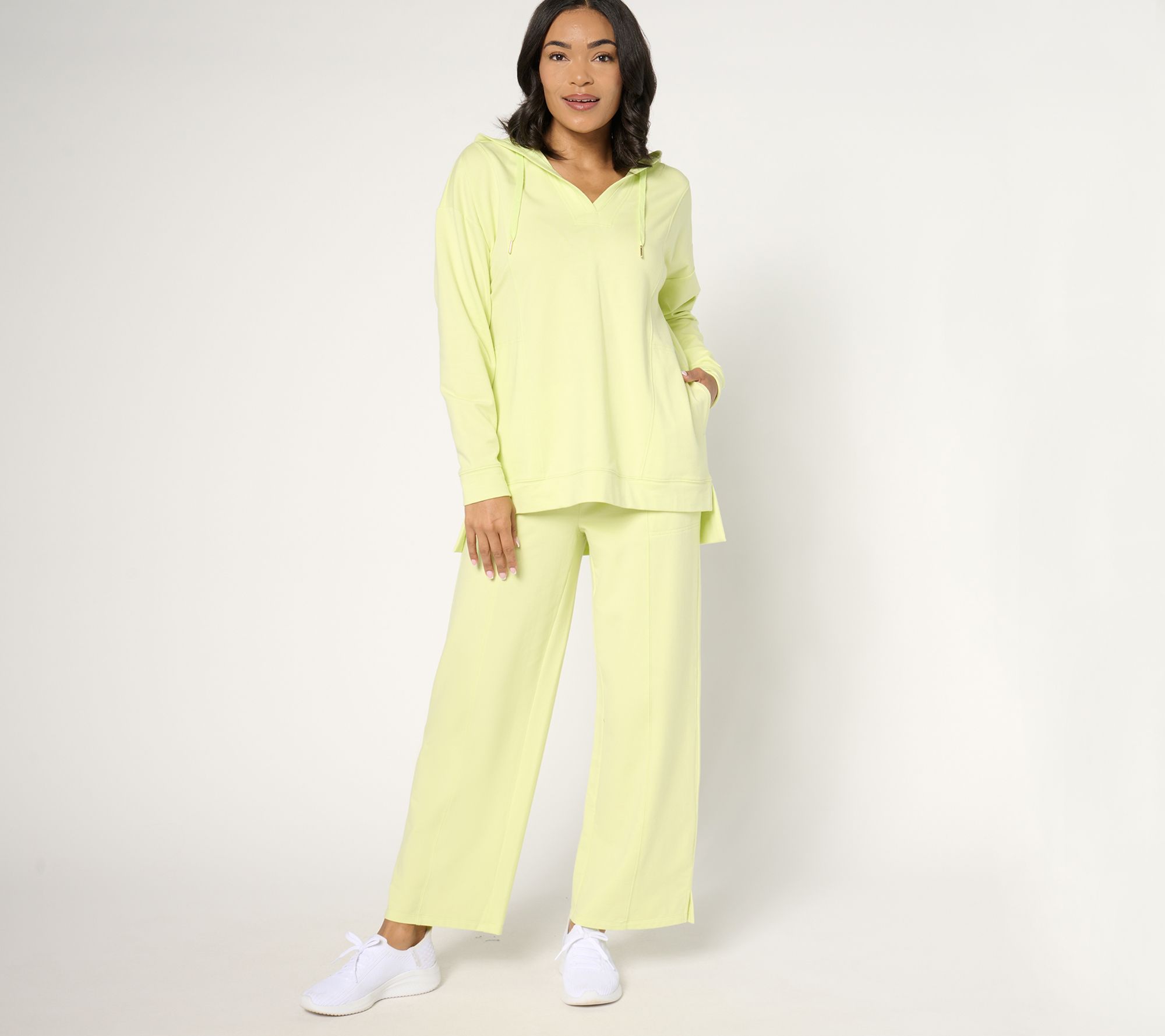 Say goodbye to basic hoodies and hello to this French terry hooded pull-over! Whether you're lounging at home or out and about, this relaxed piece brings comfortable style to your everyday wear. The hood drawcord and step hem add a touch of chic to the classic design. From the Joan Rivers Classics Collection®.