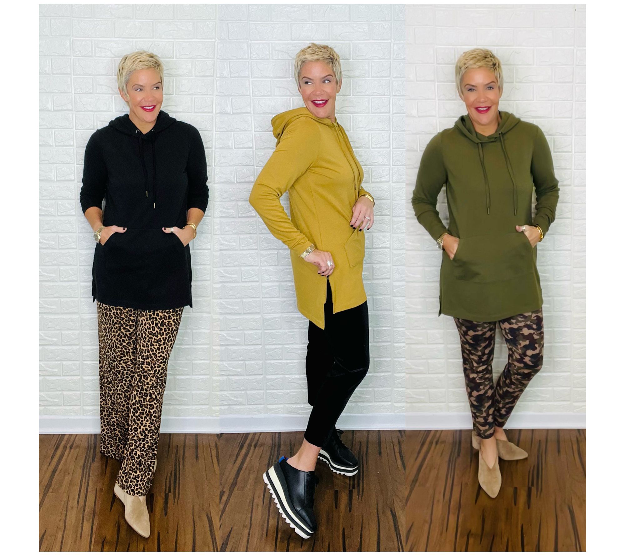 Stay cozy all season long in this French terry tunic. The kangaroo pocket provides the perfect place to keep hands warm and the drawstring hood comes in handy during chilly, brisk weather. From the Joan Rivers Classics Collection®.