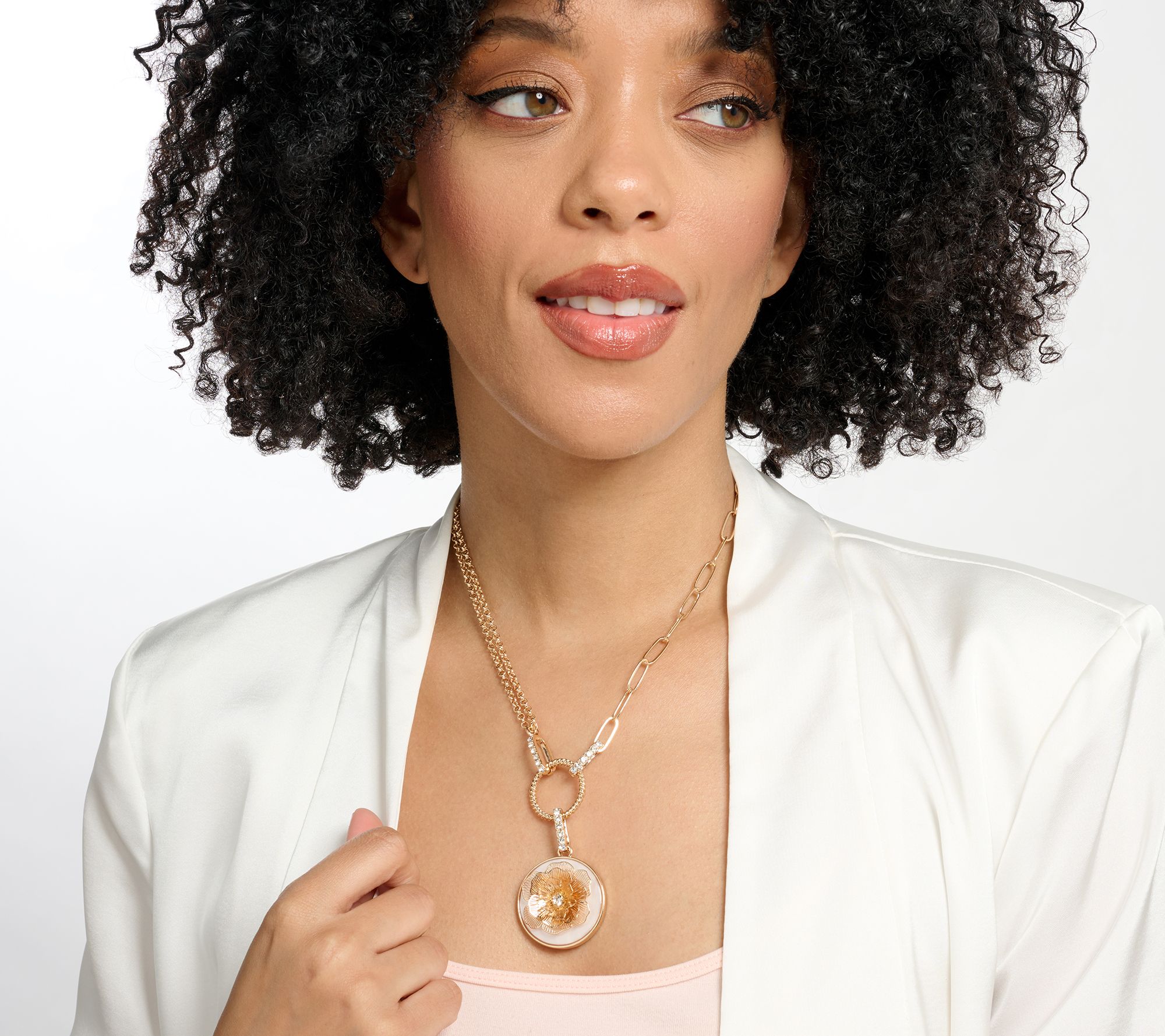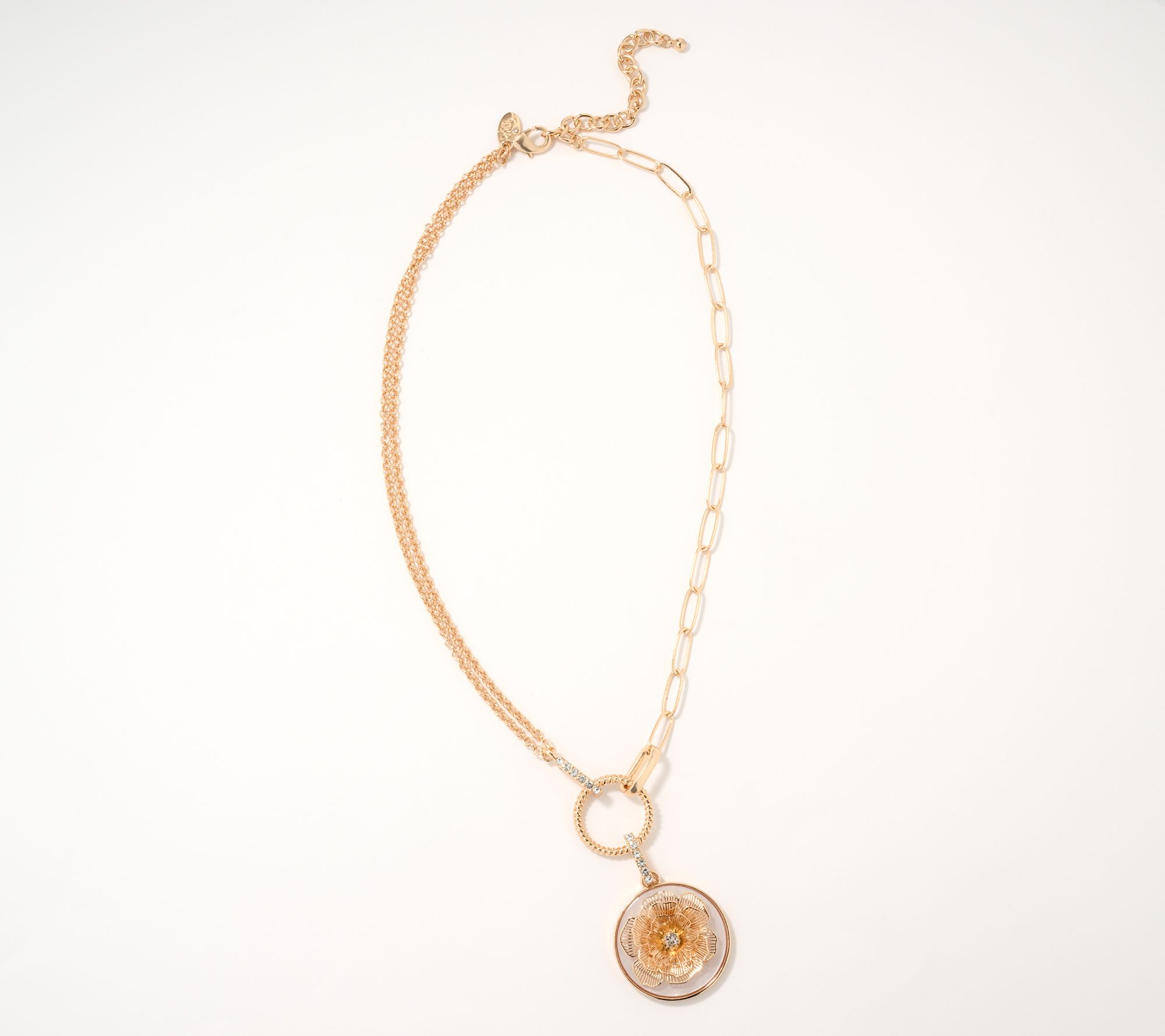 Reach for this charming sparkle-splashed necklace for the symbolism. (Gardenias are often associated with love, purity, admiration, gentleness, and harmony.) Or reach for it for the cool mix of on-trend paperclip chain and shimmery rolo links. Either way, the design becomes a signature accessory that'll have everyone wanting to know its story. From the Joan Rivers Classics Collection®.