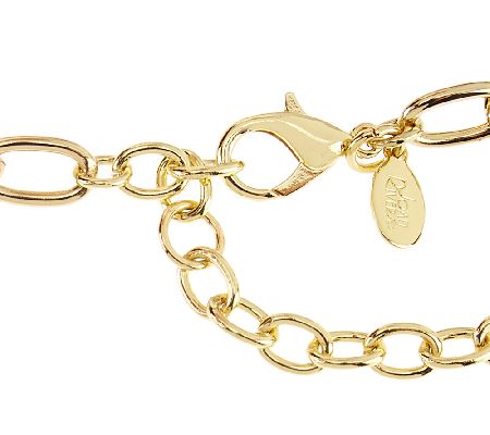 • Five stations combining oval resin cabochon beads and floral accents pave set with round, clear crystals; rolo chain