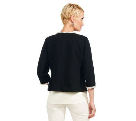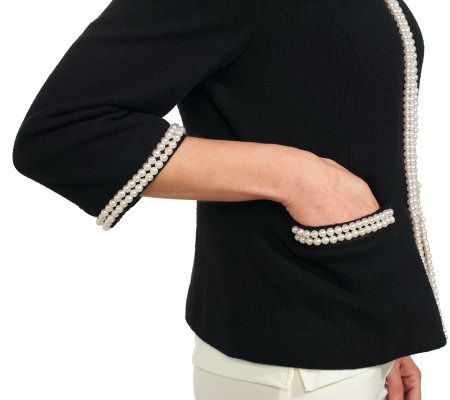 Order up a big serving of style with this Ladies Who Lunch knit jacket. A double row of simulated pearls trims the neckline, pockets, and cuffs for added luminosity. From the Joan Rivers Classics Collection(R).