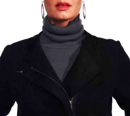 Joan Rivers Look of Suede Motorcycle Jacket with Side Zip