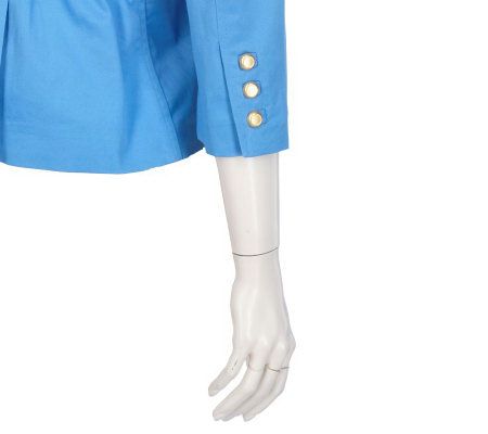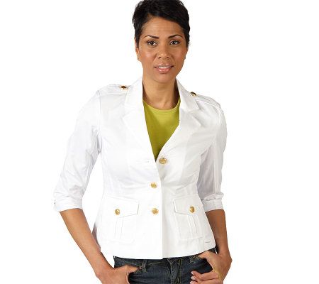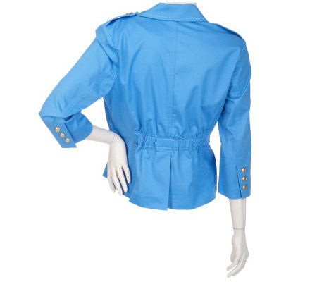 Refresh your outerwear collection for the season with this sensational jacket. Decorative topstitching and goldtone buttons give it a feminine look, while gathered ruching in the back offers flattering shape. From the Joan Rivers Classics Collection(R).