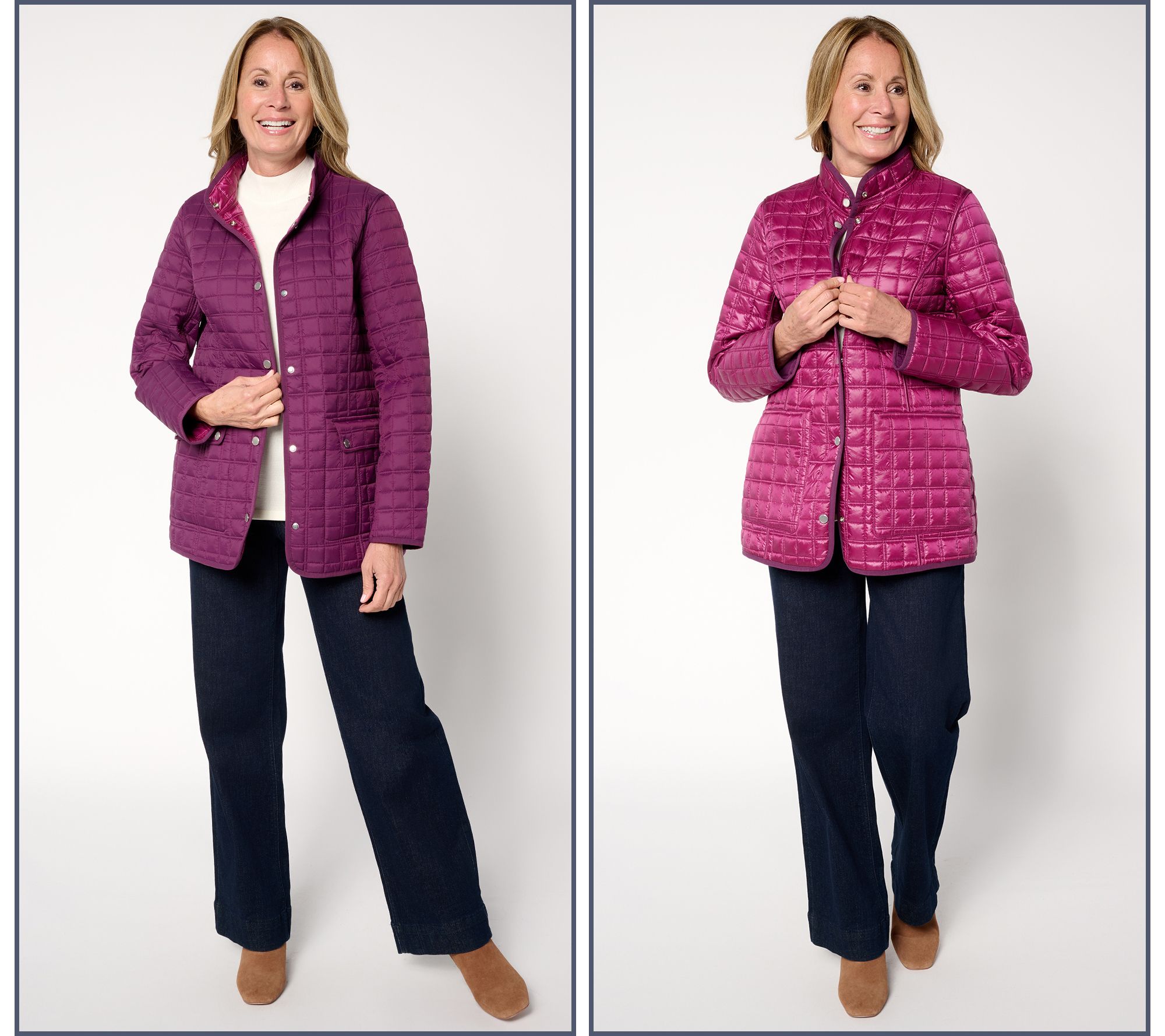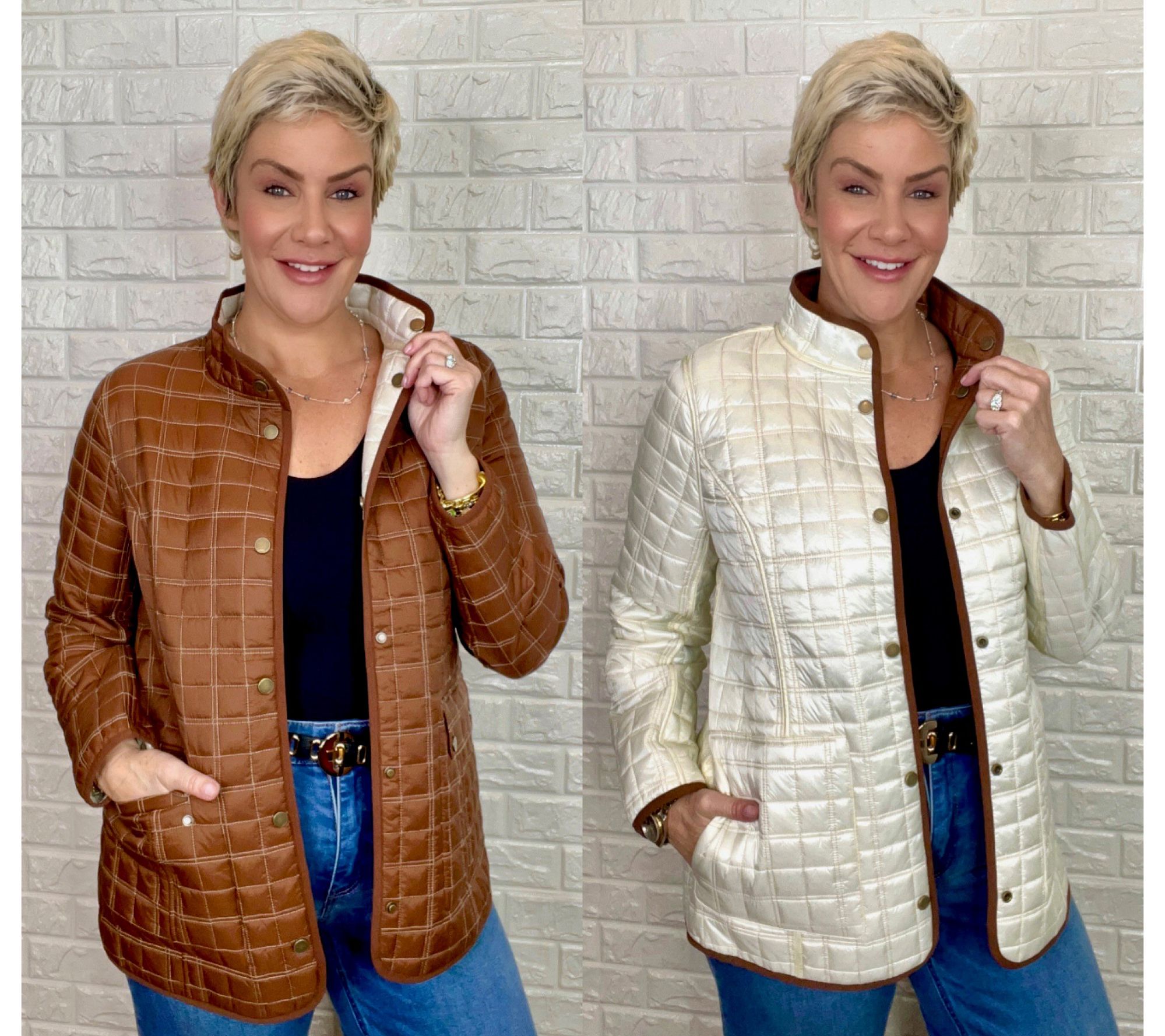 Cooler temps are approaching and you know what that means -- jacket season! This reversible quilted jacket gives you two fabulous options: a matte side and a pearl side. You'll love the versatility, the comfort, and the undeniable style this jacket offers for a whole host of activities -- from farmer's markets to football games to lunch with the girls. From the Joan Rivers Classics Collection®.